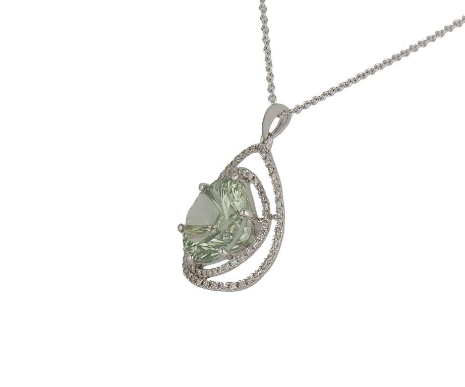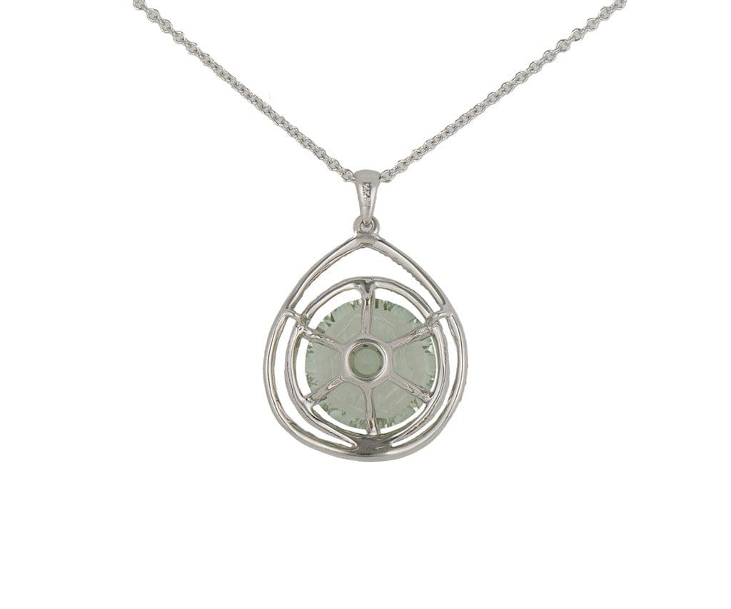 6.50ct Green Quartz and 0.30ctw Diamond Double Frame Pendant Necklace in 14K