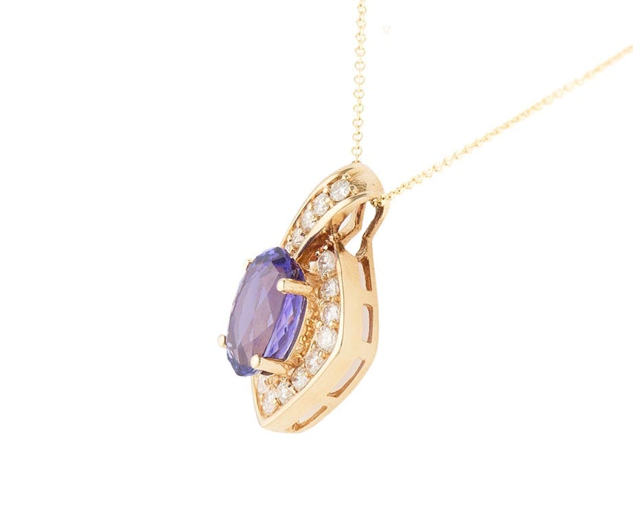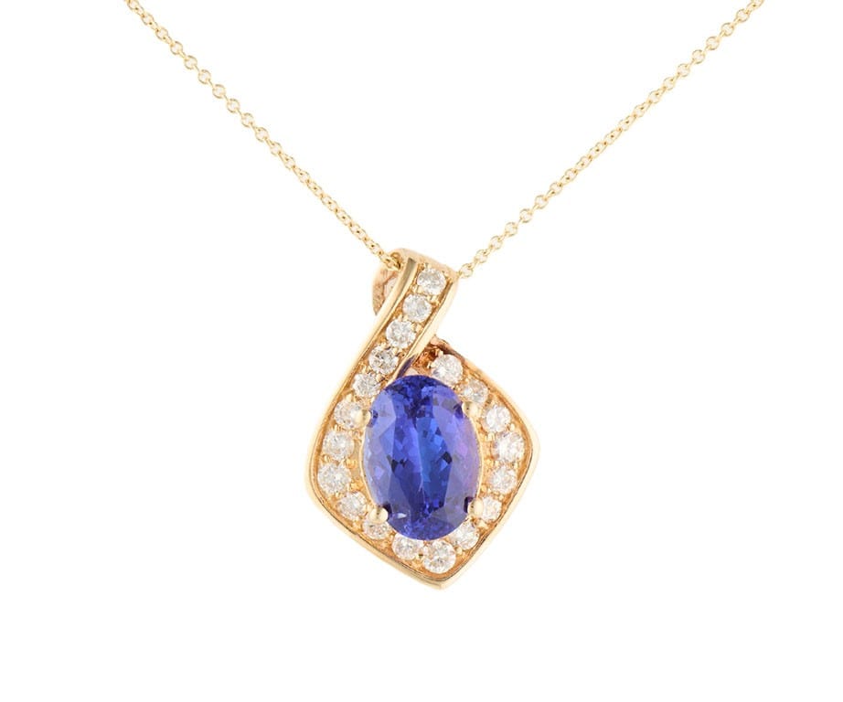 6.50ct Oval Tanzanite and 1.50ctw Round Diamond Frame Pendant Necklace in 14K
