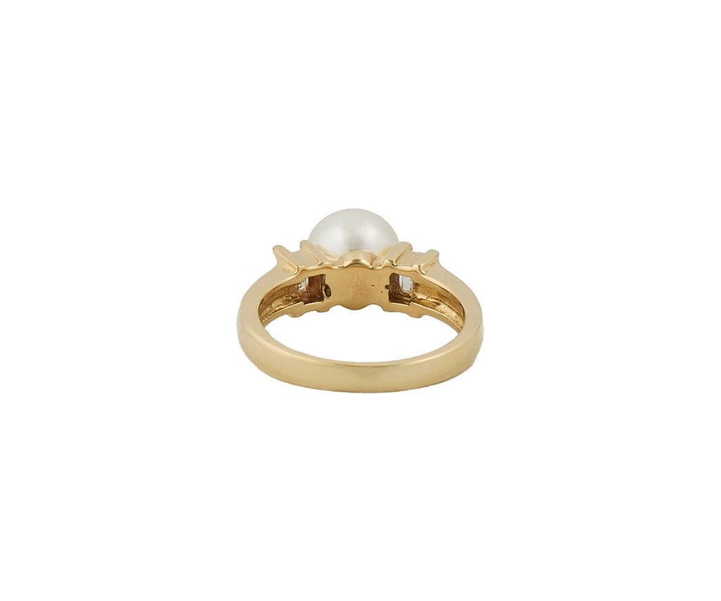 8.0MM Pearl and 0.30ctw Baguette Cut Diamonds Statement Ring in 18K