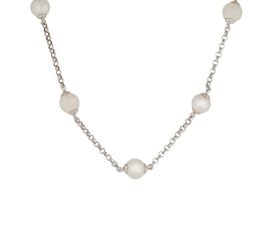 8.5MM Cultured Pearl Station Chain Necklace in 14K