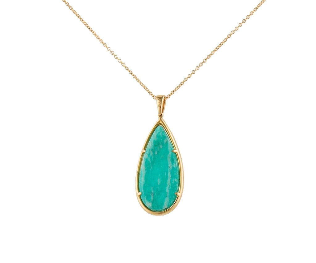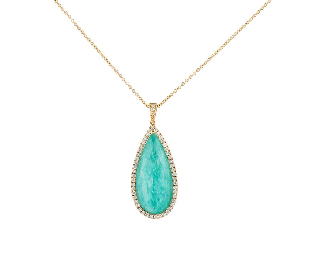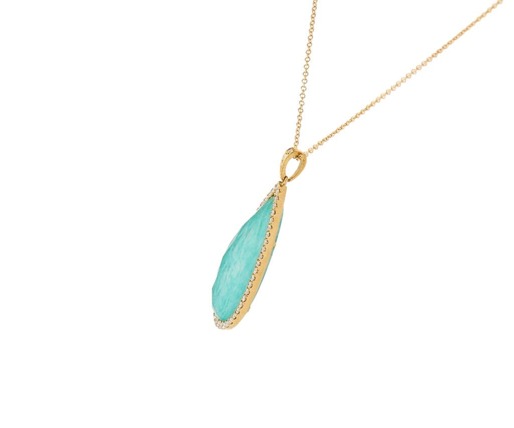 Amazonite Quartz Doublet and 0.25ctw Diamond Frame Teardrop Pendant Necklace 14K