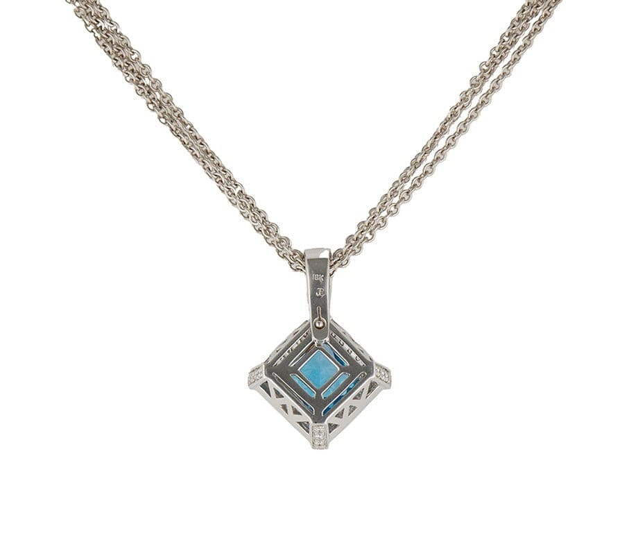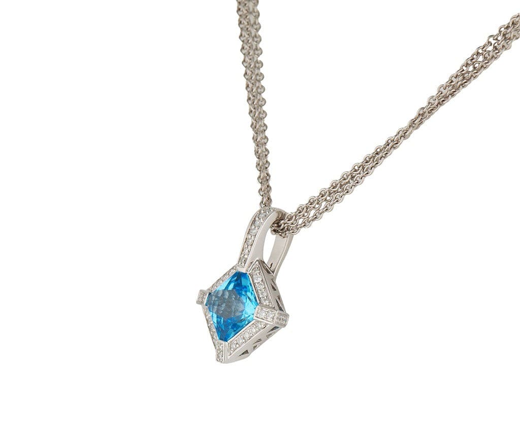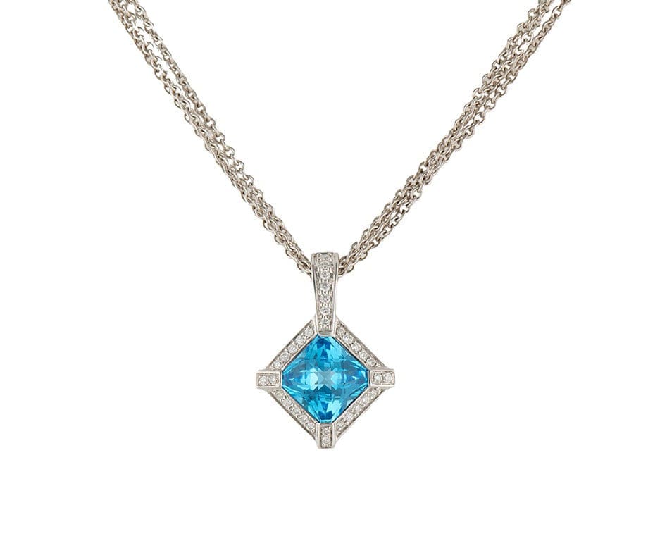 Blue Topaz and 0.55ctw Diamond Cushion Shaped Multi Strand Pendant Necklace 18K
