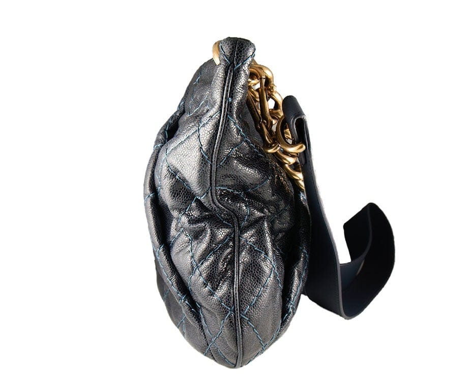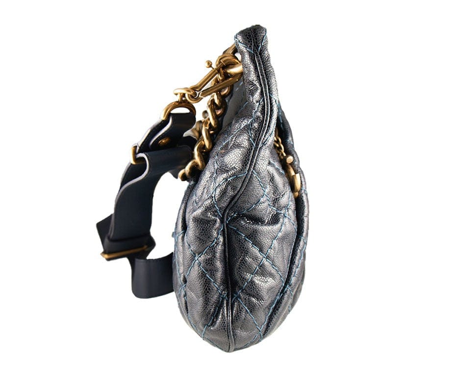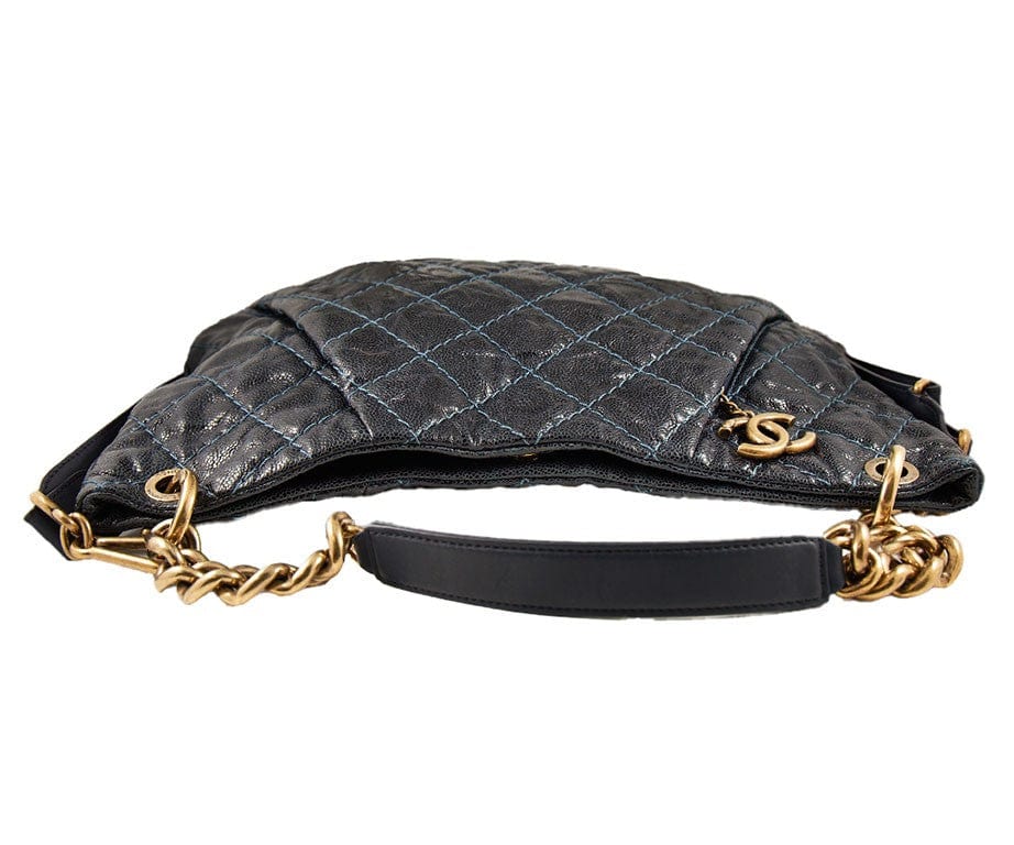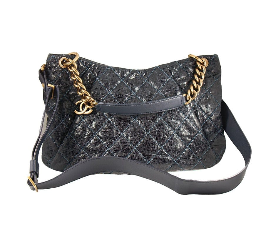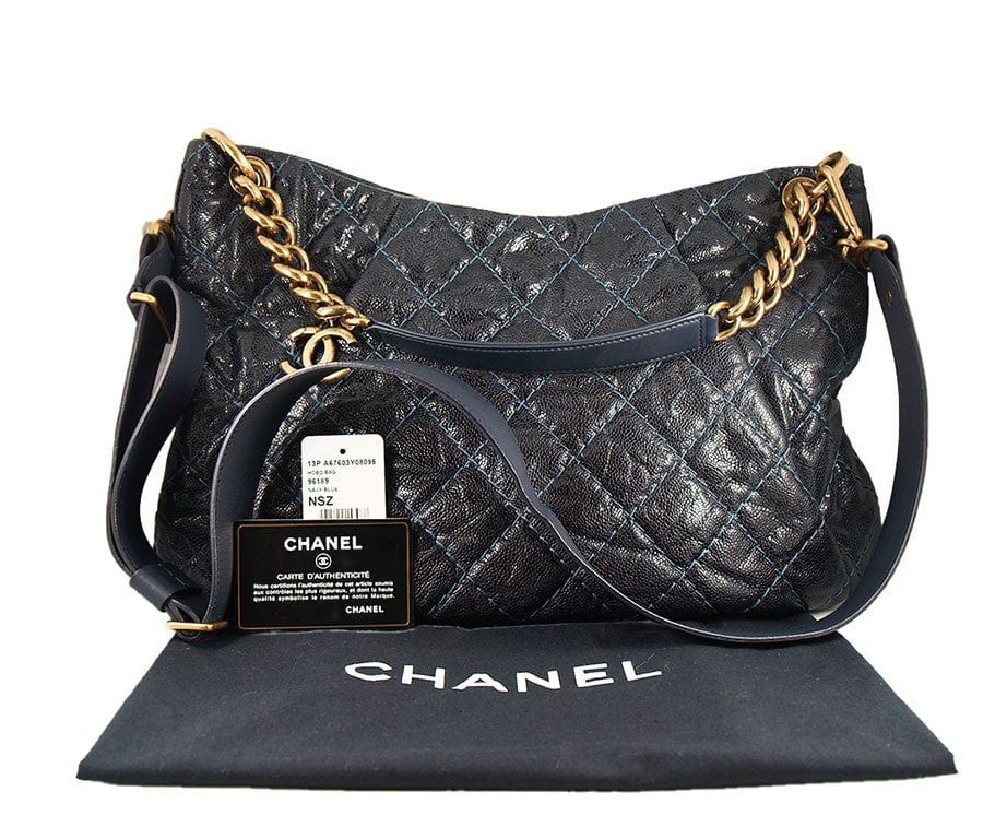 Chanel Blue Crumpled Grained Calfskin Coco Pleats Hobo Bag W/Papers & Dustbag