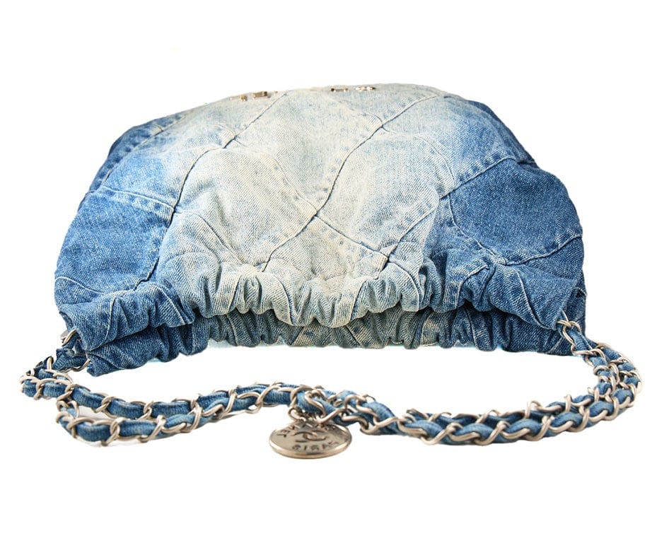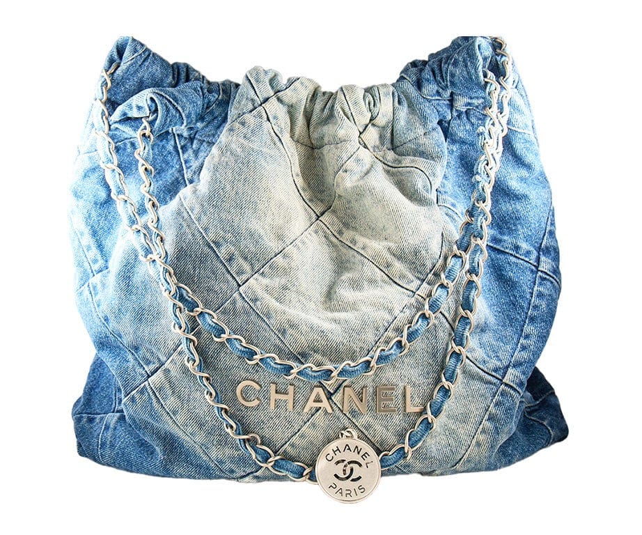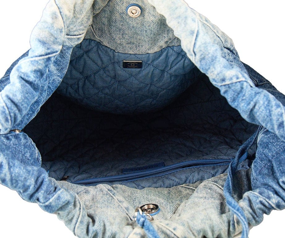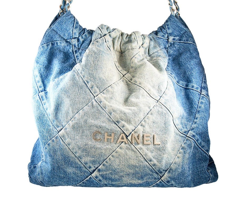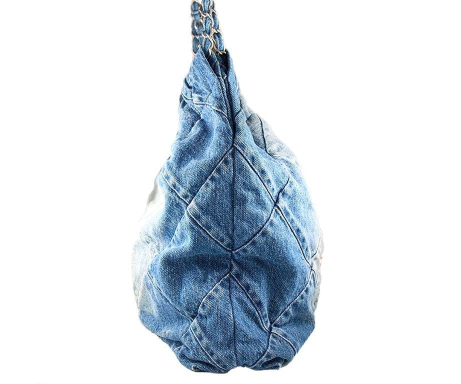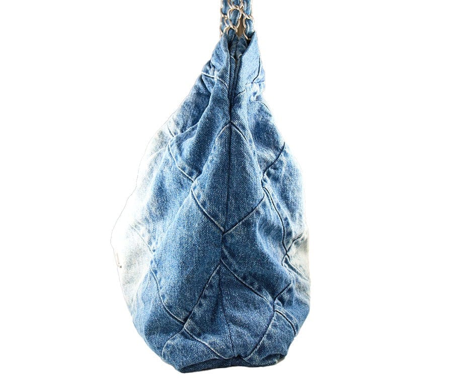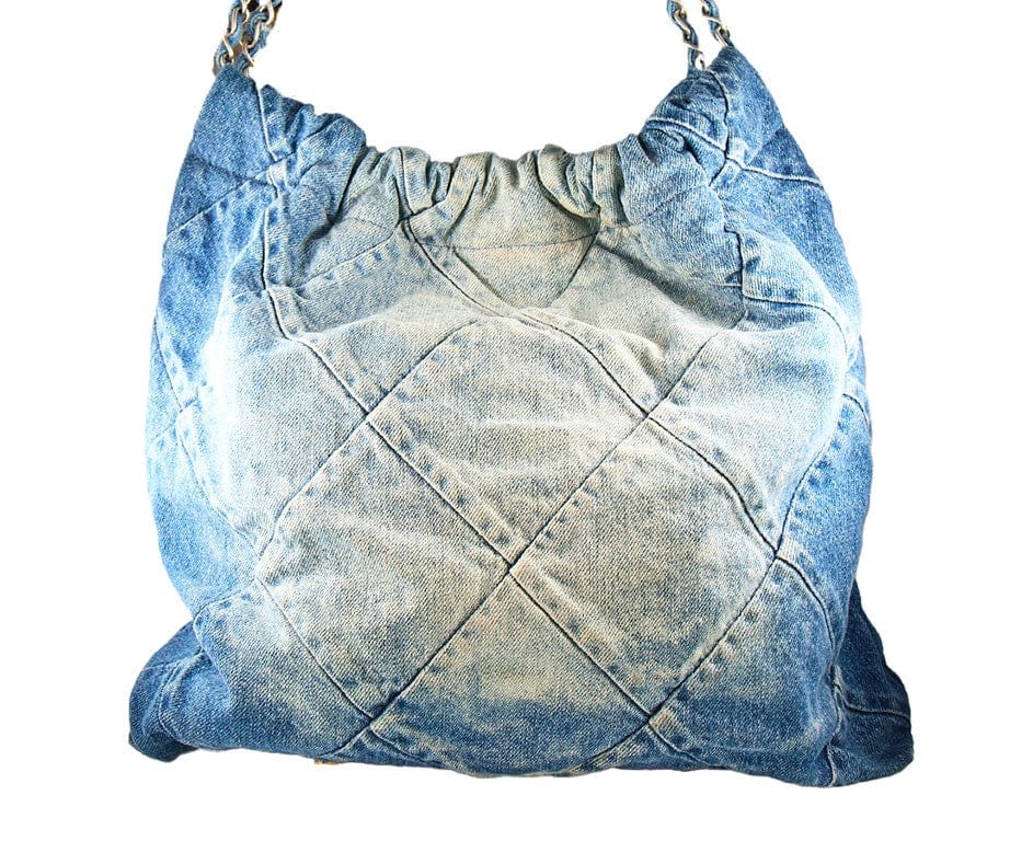 Chanel Wash Blue Denim Quilted Small 22 Hobo Bag W/Box and Dustbag