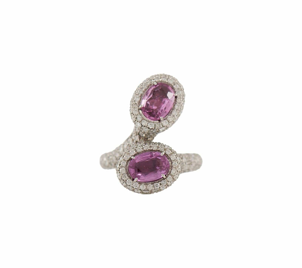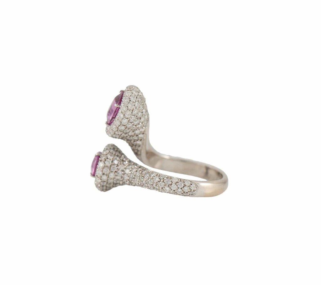 Chantecler 2.93ctw Pink Sapphire and 3.13ctw Pave Diamond Bypass Ring in 18K