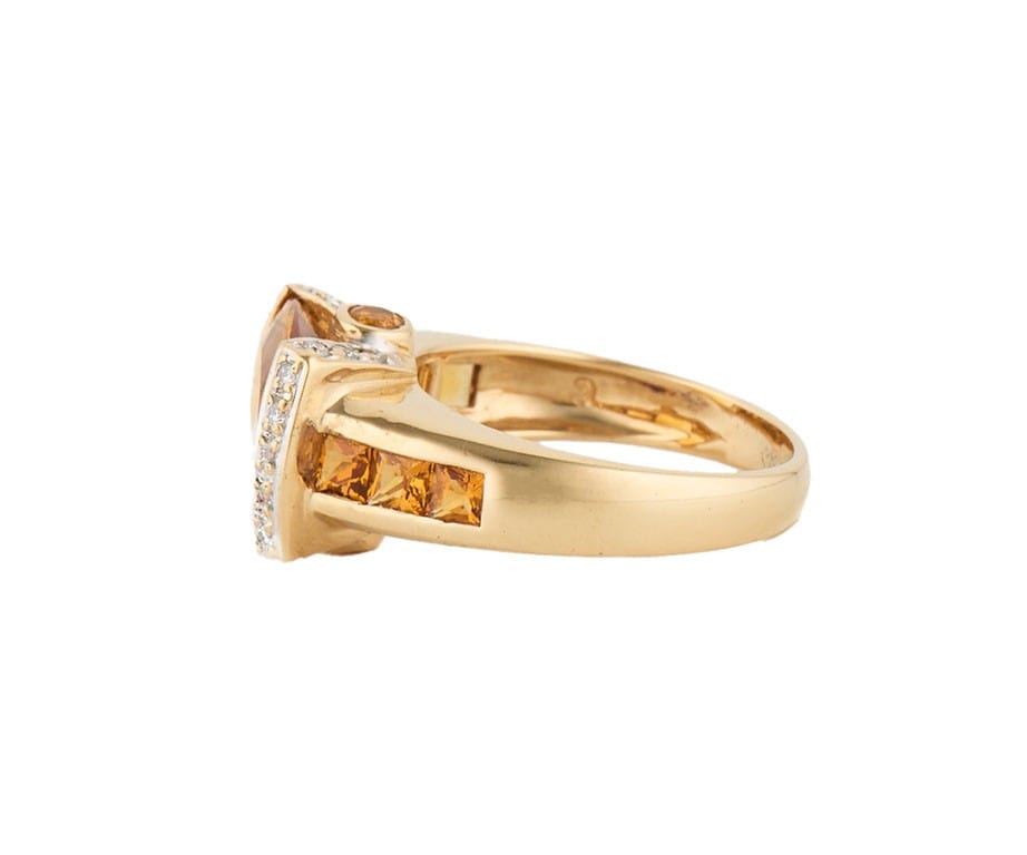 Citrine and 0.45ctw Pave Diamond V Shaped Statement Ring in 18K