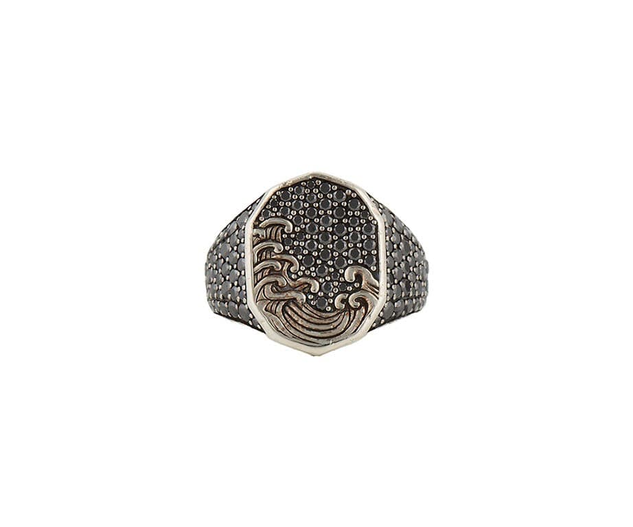 David Yurman Gents 1.90ctw Pave Black Diamond Waves Signet Ring in Sterling