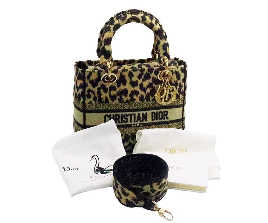 Dior Lucky Small Lady Leopard Pattern DLite Bag W/Strap, Papers and Dustbag