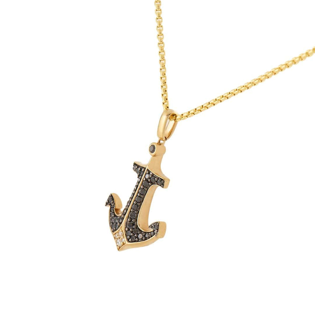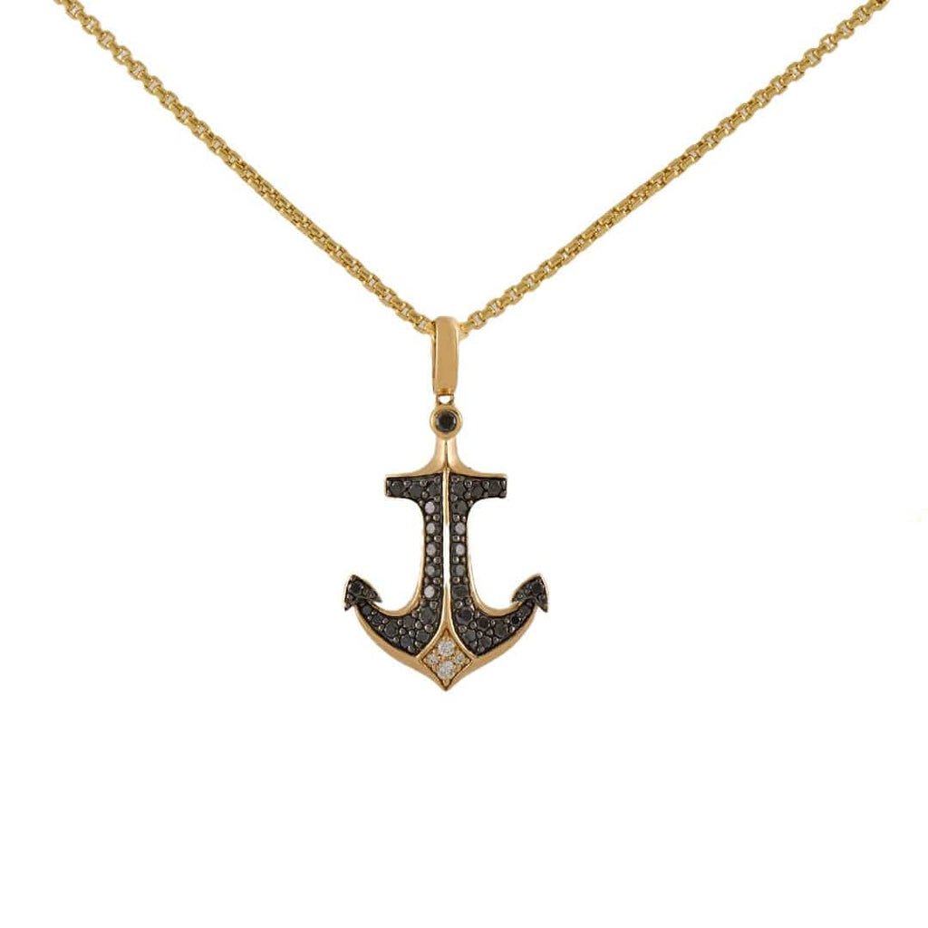 Effy 0.73ctw Black and White Diamond Anchor Pendant Necklace in 14K
