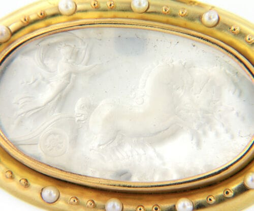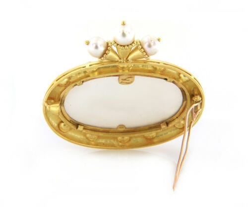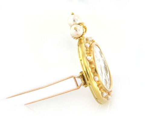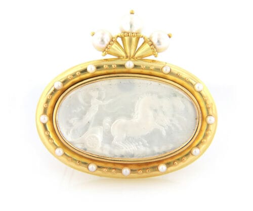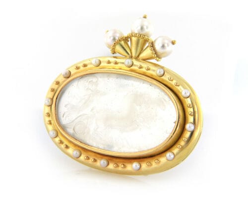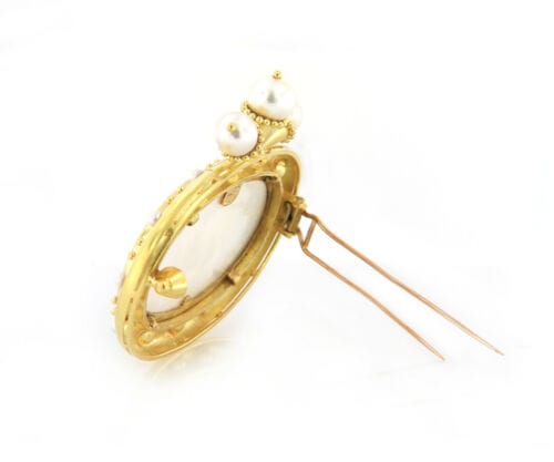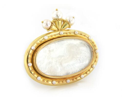 Elizabeth Locke Cultured Pearl and Mother of Pearl Intaglio Brooch in 18K