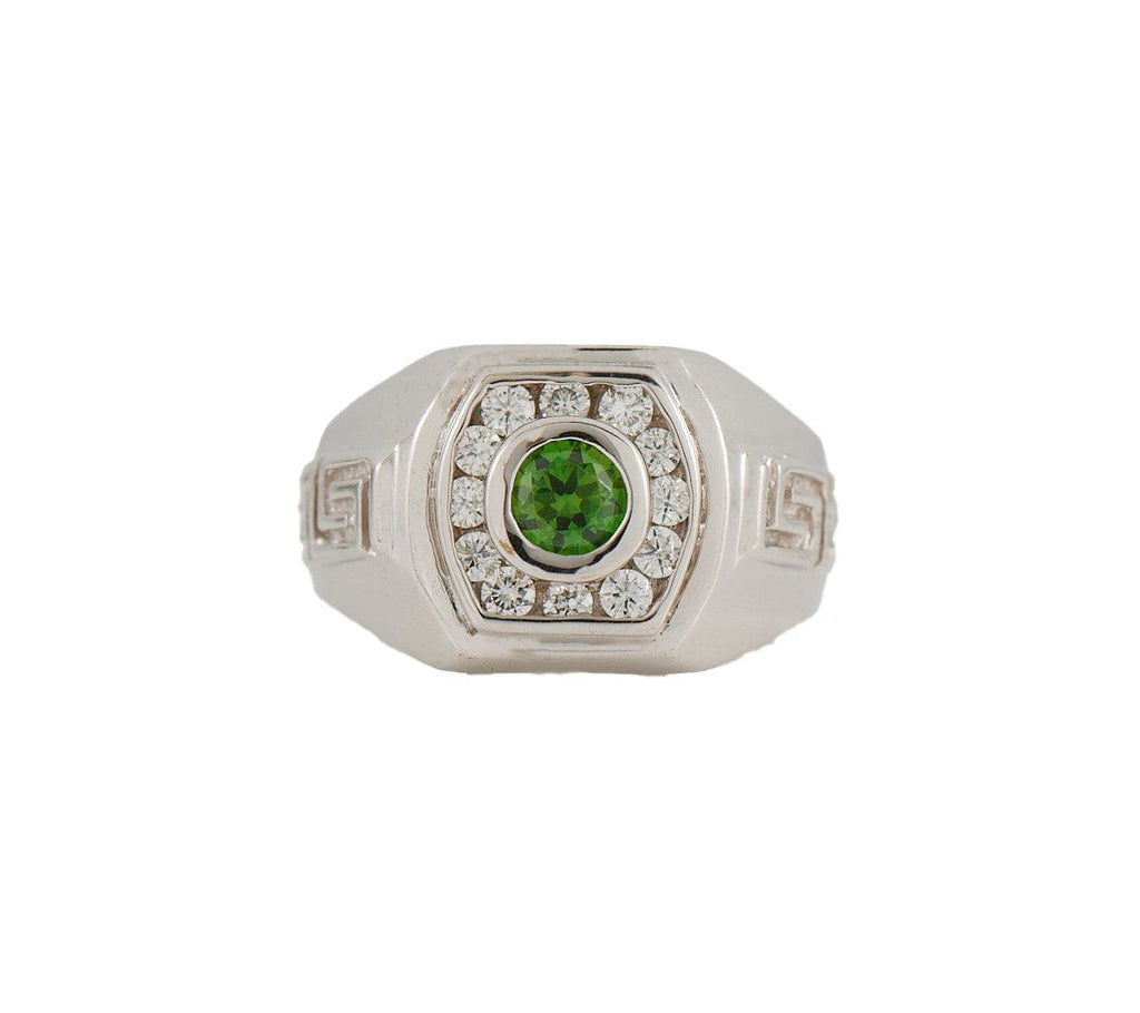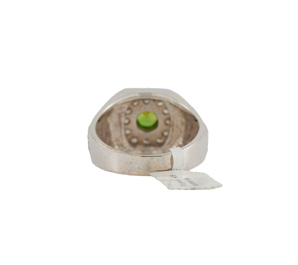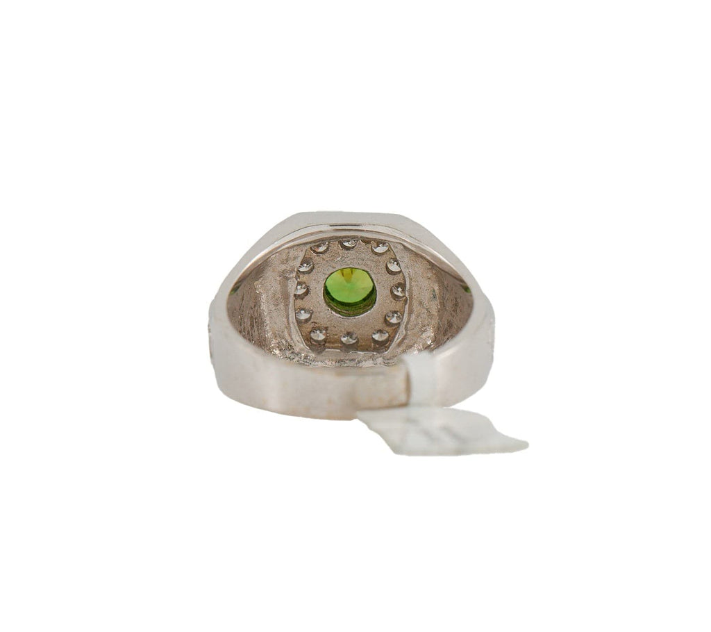 Gents 0.60ct Demantoid Garnet and 0.70ctw Diamond Frame Signet Ring in 18K