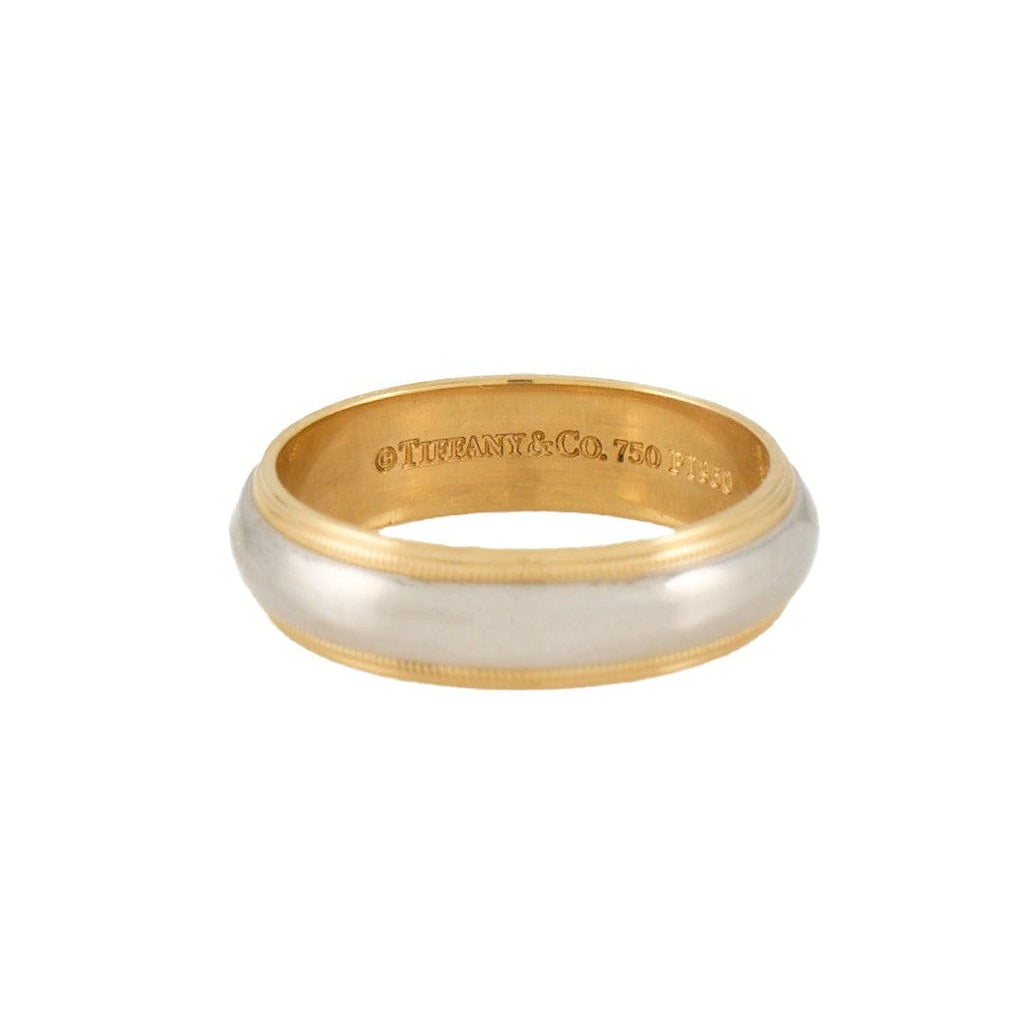 Gents Tiffany & Co. 6.0MM Milgrain Two Tone Wedding Band Ring in 18K & Platinum