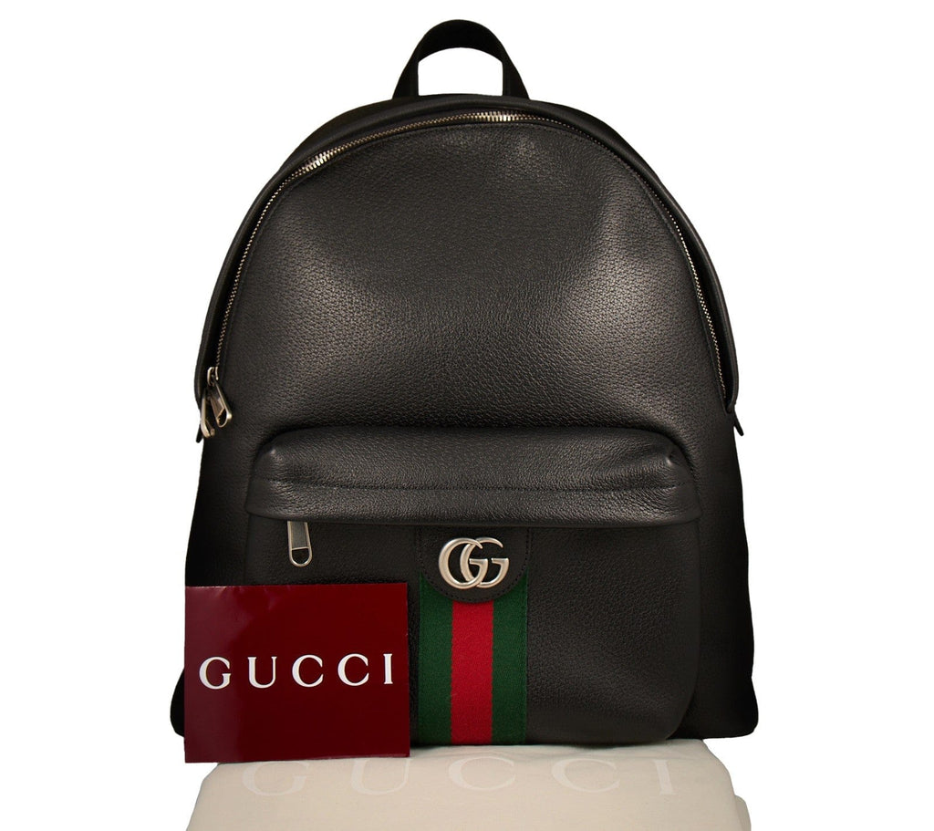 Gucci Black Leather Ophidia Medium Backpack W/Dustbag