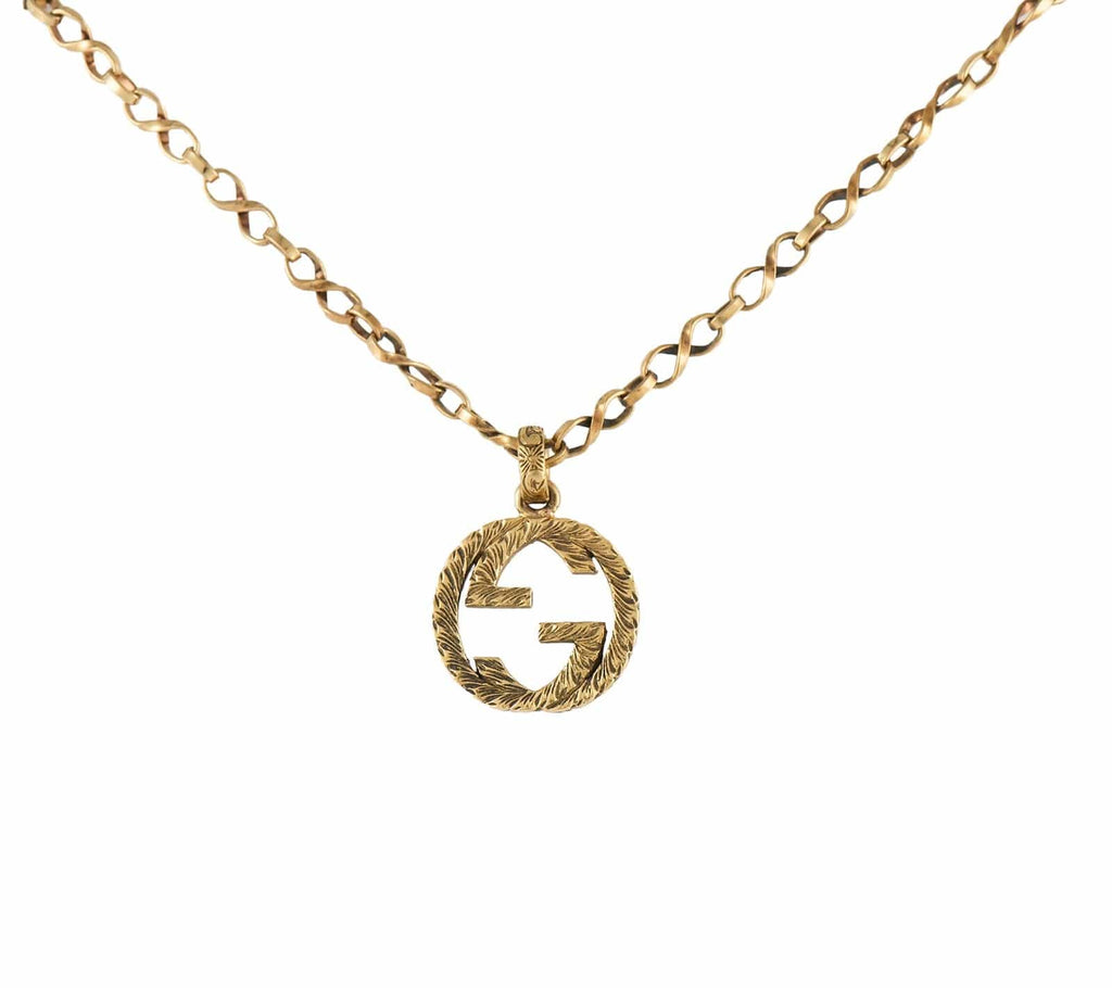 Gucci Interlocking G Arabesque Pendant Necklace in 18K