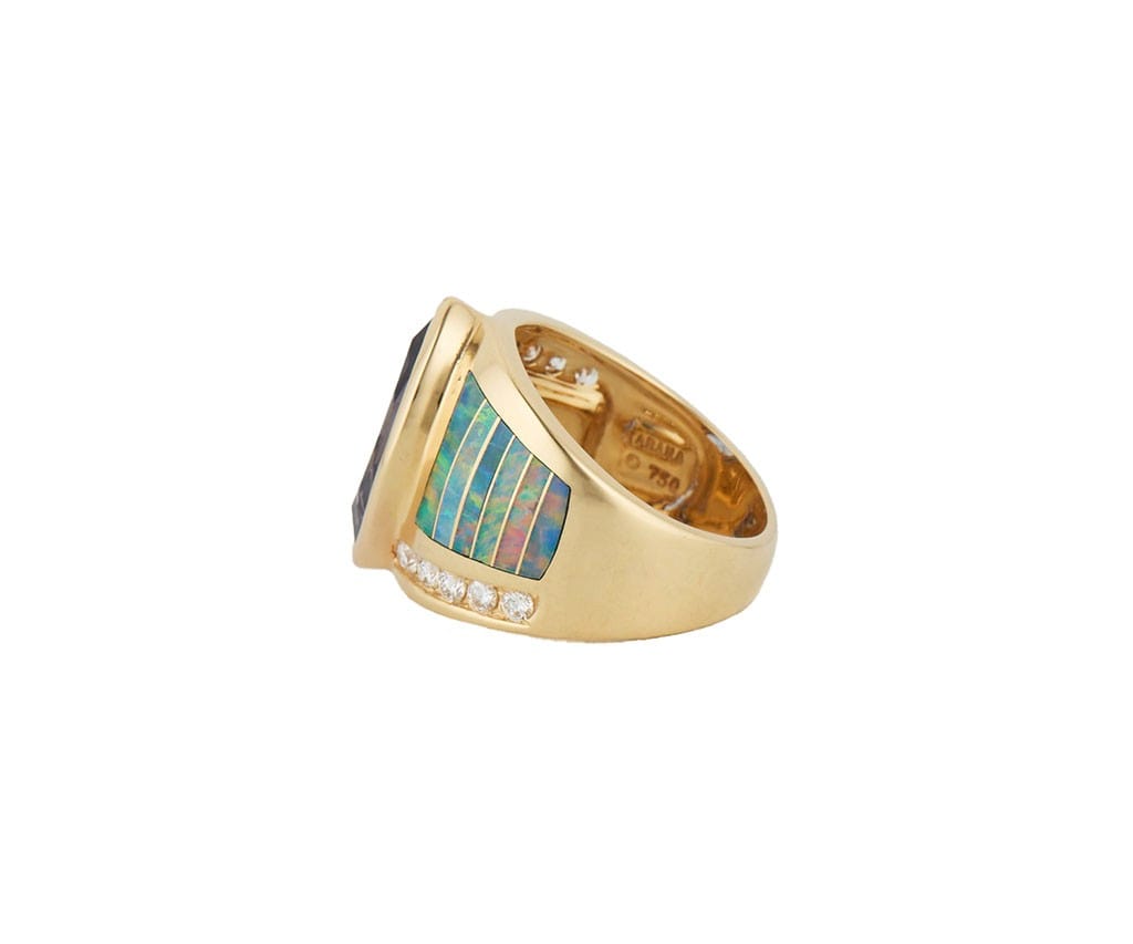 Kabana Tanzanite Opal Inlay and 0.30ctw Diamond Dome Ring in 18K