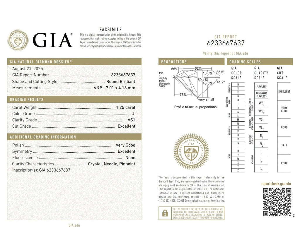 Loose Diamond, 1.25ct, GIA Certified, Round Brilliant Cut