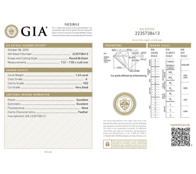 Loose Diamond, 1.63ct, GIA Certified, Round Brilliant Cut