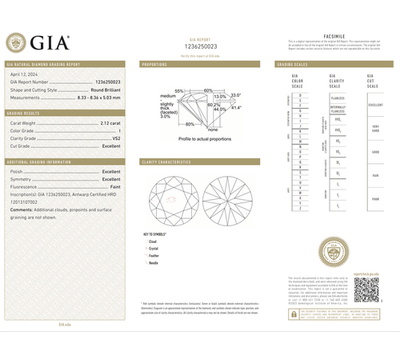 Loose Diamond, 2.12ct, GIA Certified, Triple Excellent, Round Brilliant Cut