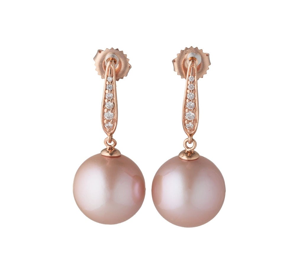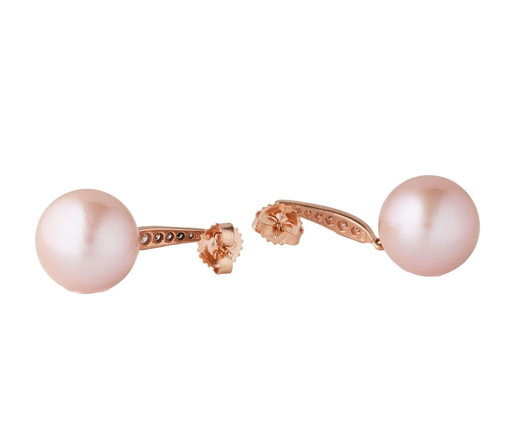 Na Hoku 14.5MM Pink Pearl and 0.20ctw Diamond Drop Earrings in 14K