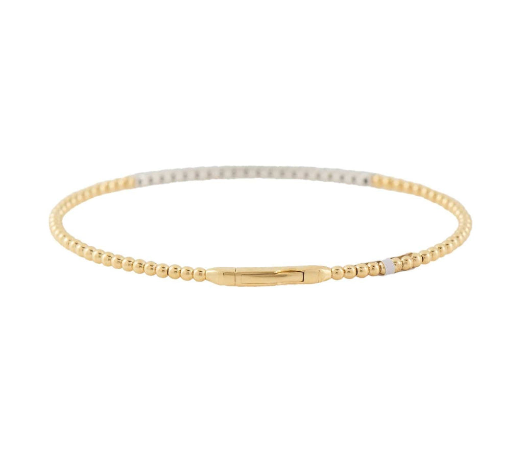New 0.40ctw Round Diamond Beaded Two Tone Flex Bangle Bracelet in 14K