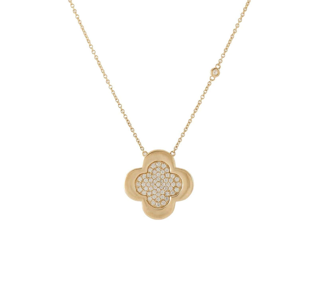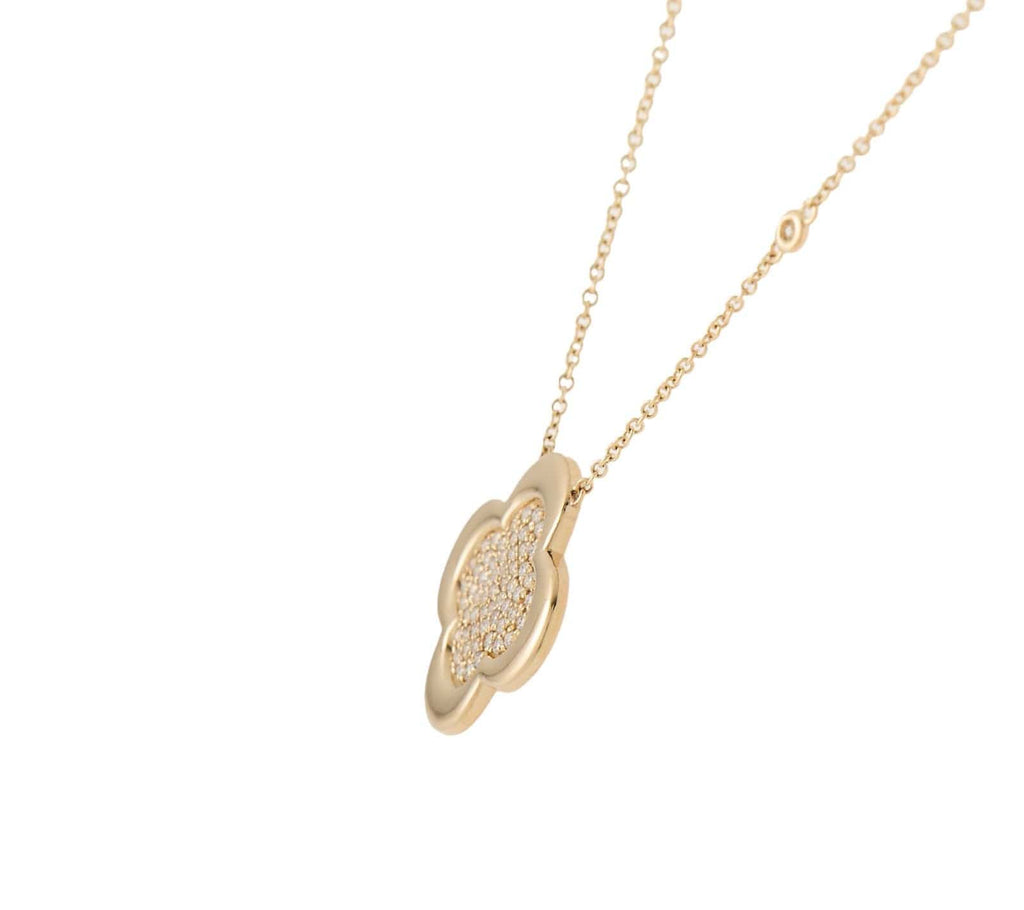 New 0.51ctw Pave Diamond Clover Shaped Frame Pendant Necklace in 14K