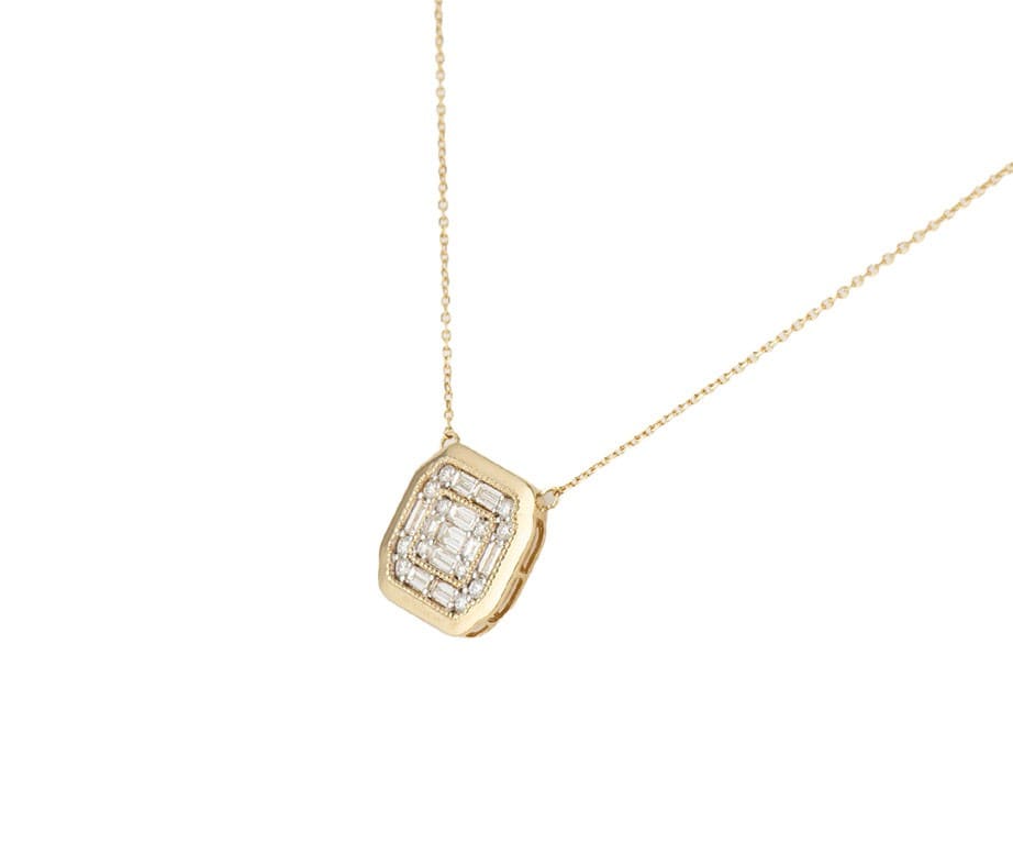 New 0.83ctw Baguette and Round Diamond Mosaic Pendant Necklace in 14K