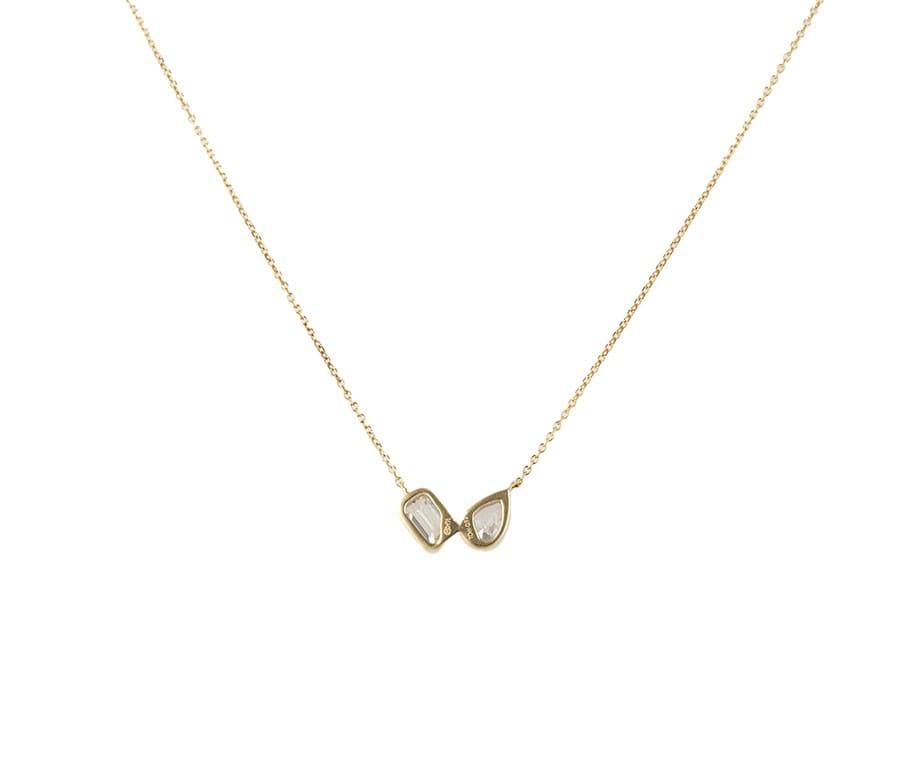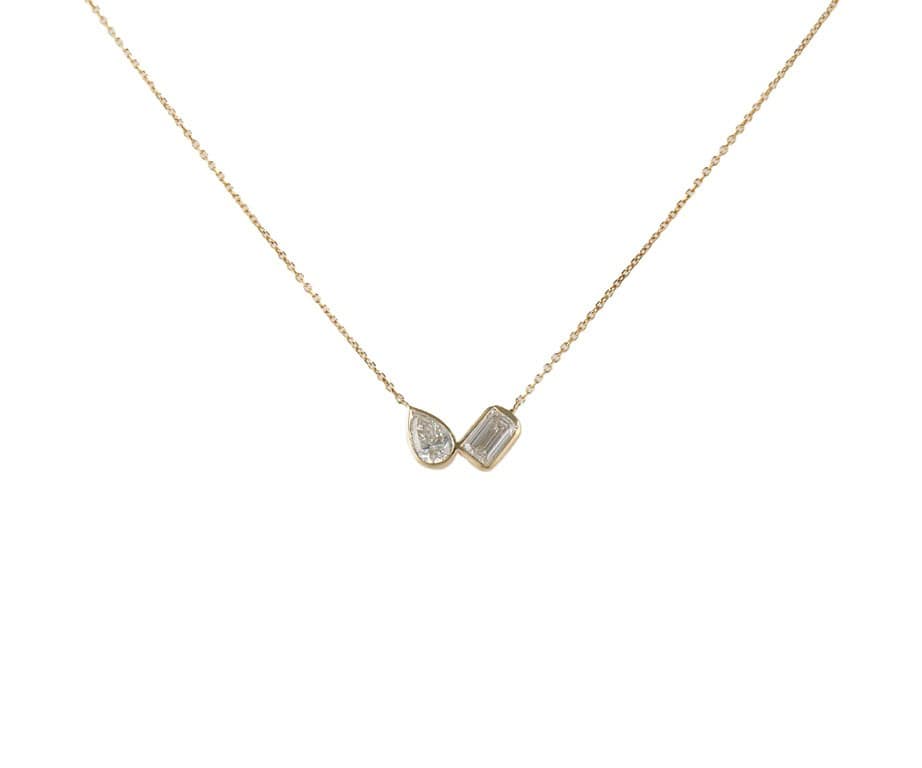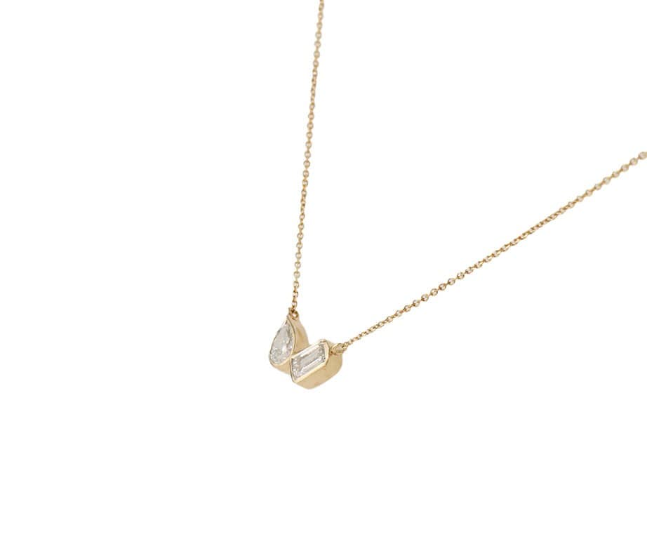 New 0.92ctw Emerald and Pear Shaped Diamond Toi Et Moi Bezel Set Necklace in 14K