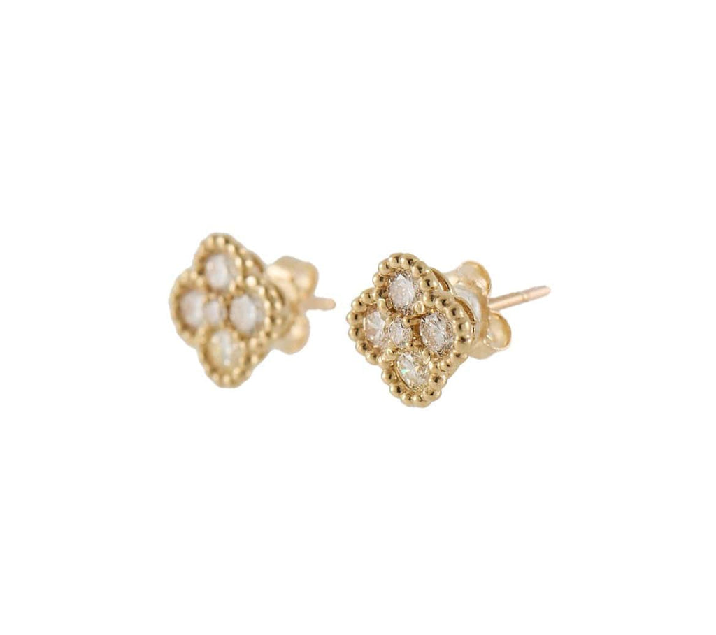 New 1.03ctw Round Diamond Clover Shaped Stud Earrings in 14K