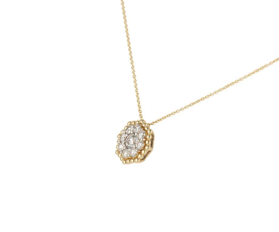 New 1.03ctw Round Diamond Cluster Hexagon Beaded Pendant Necklace in 14K