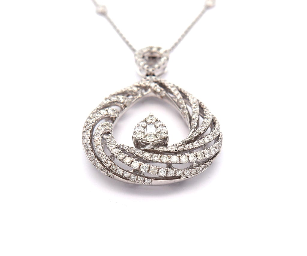 New 1.90ctw Diamond Cluster Swirl Pendant Necklace in 18K