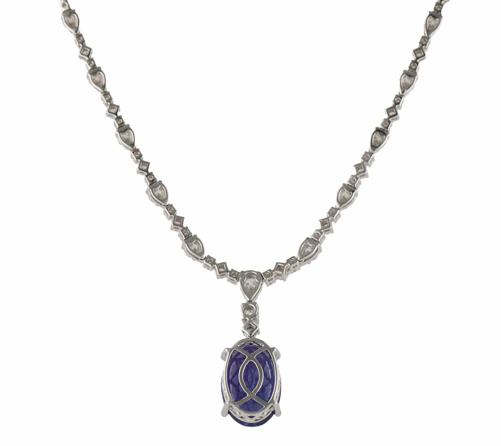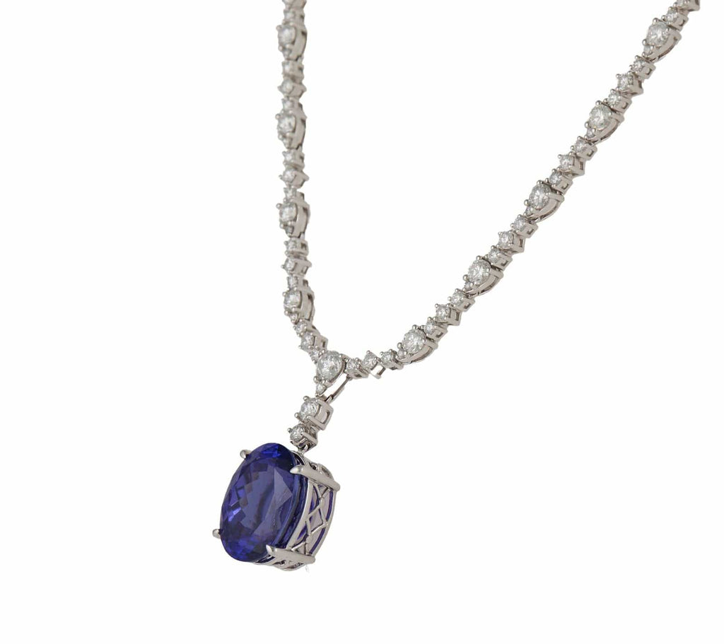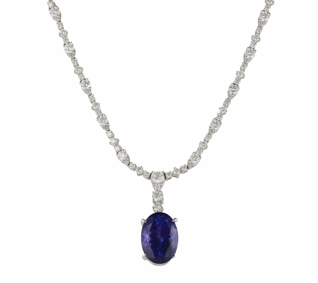 New 10.47ct Oval Tanzanite and 7.50ctw Mixed Cut Diamond Pendant Necklace in 14K