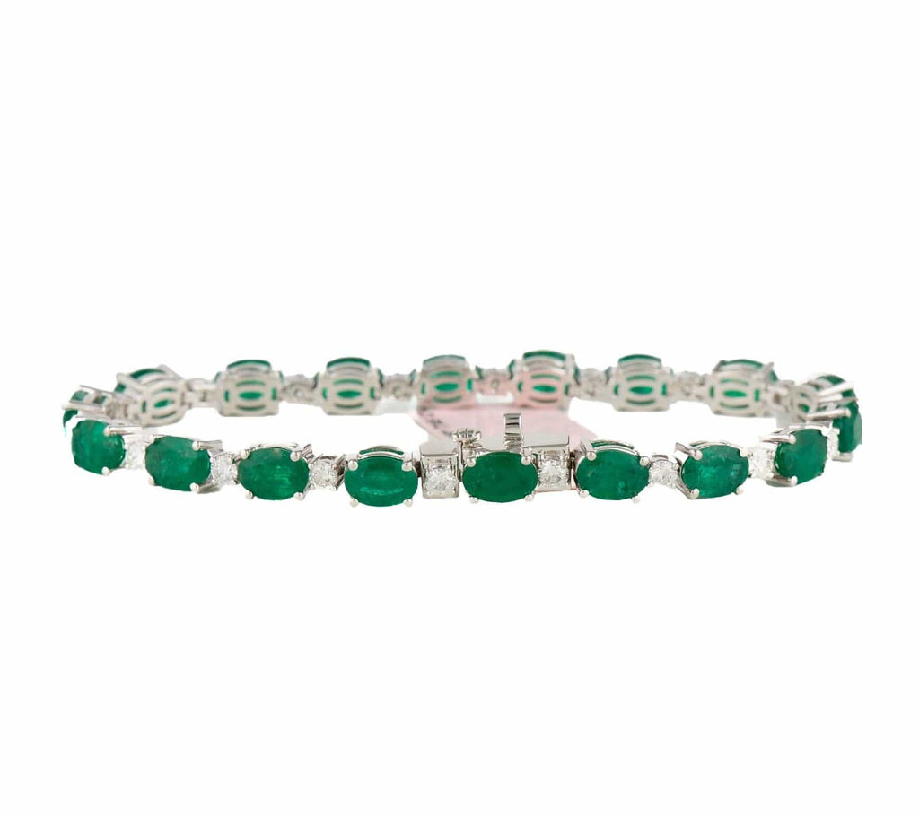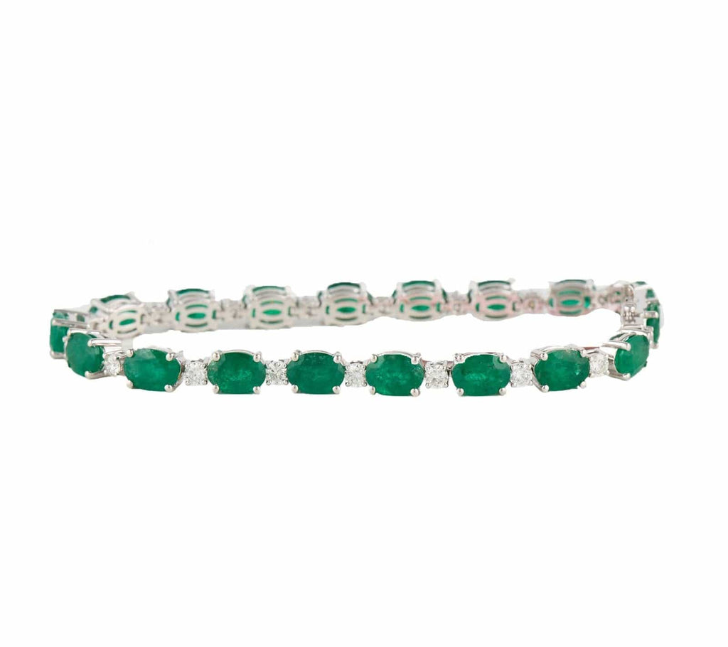 New 12.0ctw Oval Emerald and 1.55ctw Diamond Tennis Bracelet in 14K