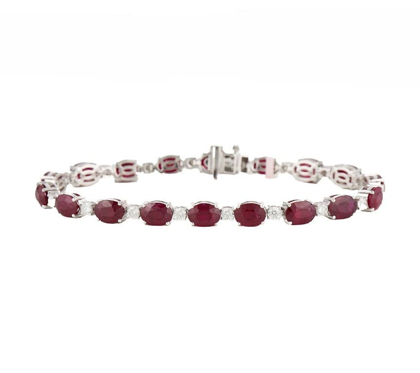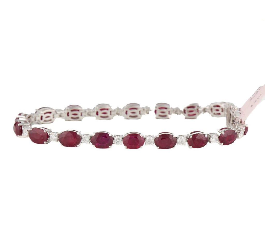 New 16.17ctw Oval Ruby and 1.55ctw Diamond Tennis Bracelet in 14K