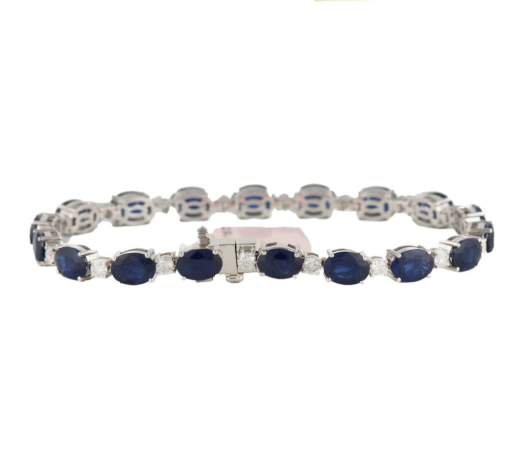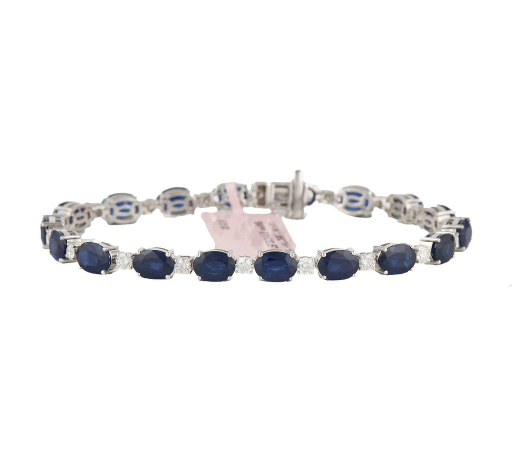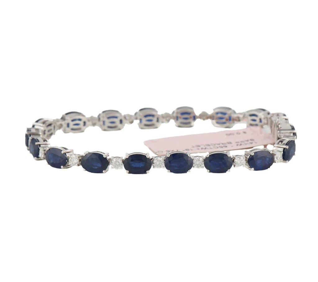 New 16.52ctw Oval Sapphire and 1.55ctw Diamond Tennis Bracelet in 14K
