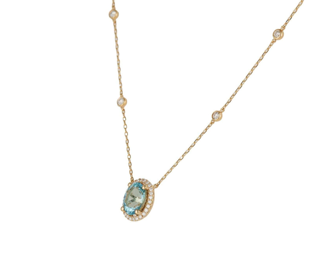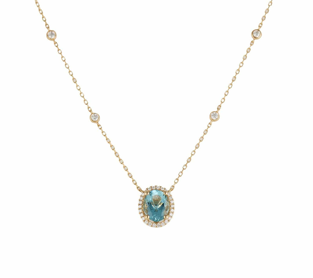 New 2.05ct Oval Aquamarine and 0.58ctw Diamond Frame Pendant Necklace in 14K