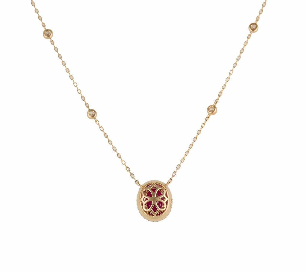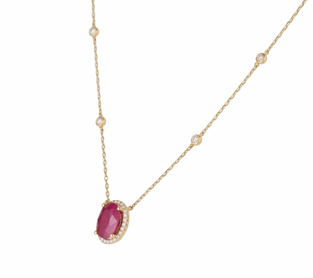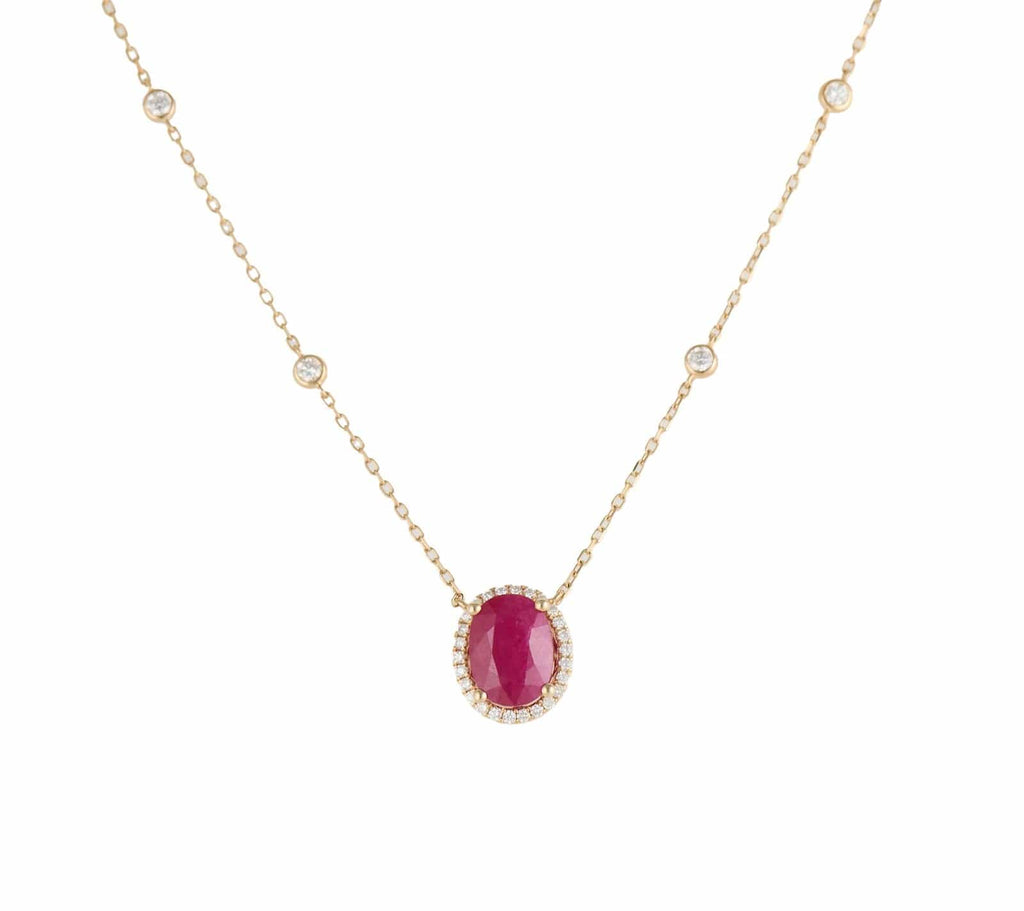 New 3.34ct Oval Ruby and 0.58ctw Diamond Frame Pendant Necklace in 14K