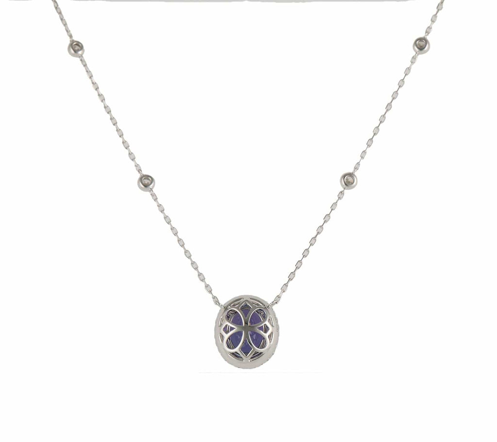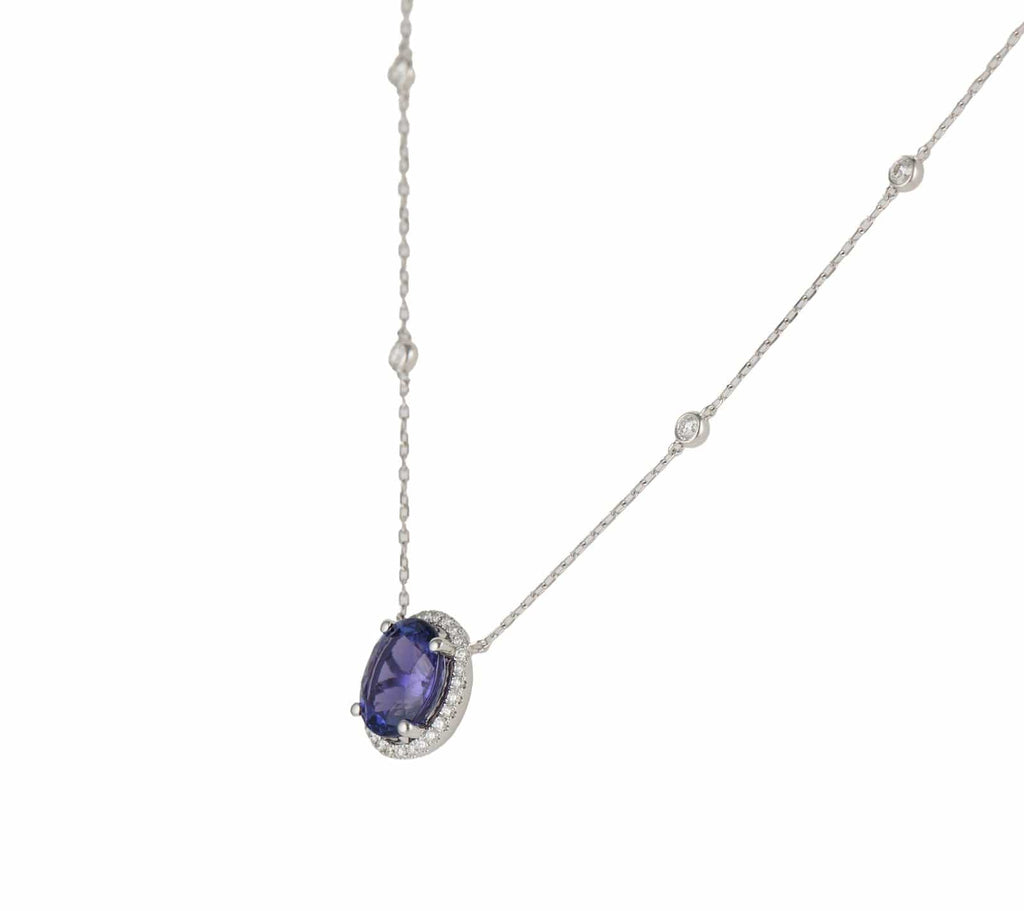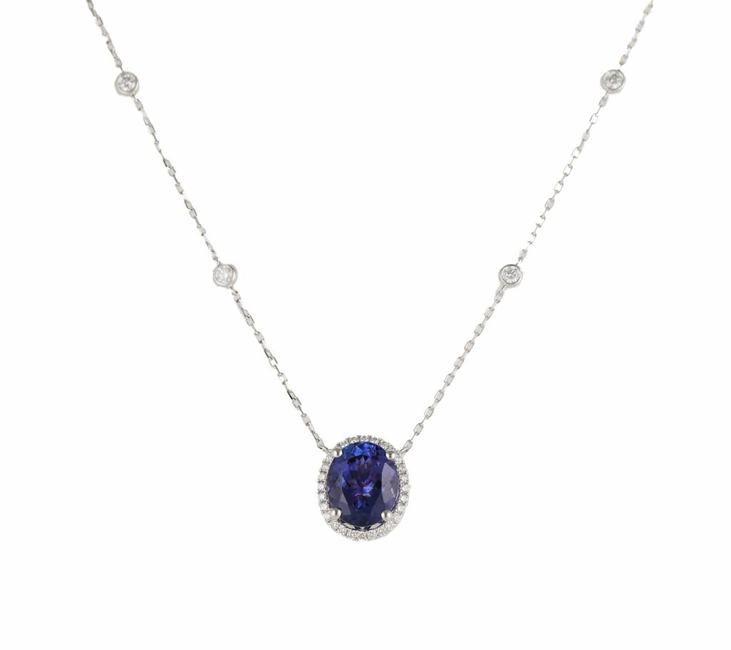New 4.14ct Oval Tanzanite and 0.60ctw Diamond Frame Pendant Necklace in 14K