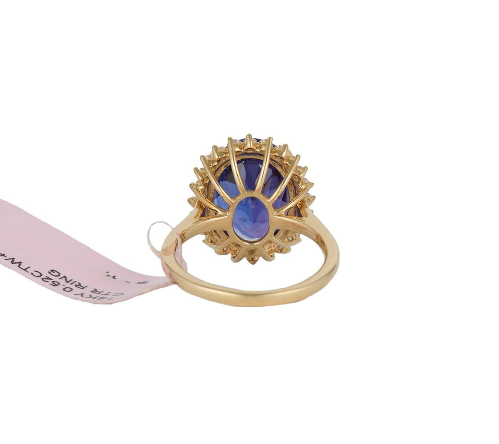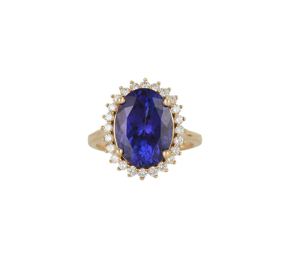 New 6.50ct Oval Tanzanite and 0.52ctw Diamond Frame Ring in 14K