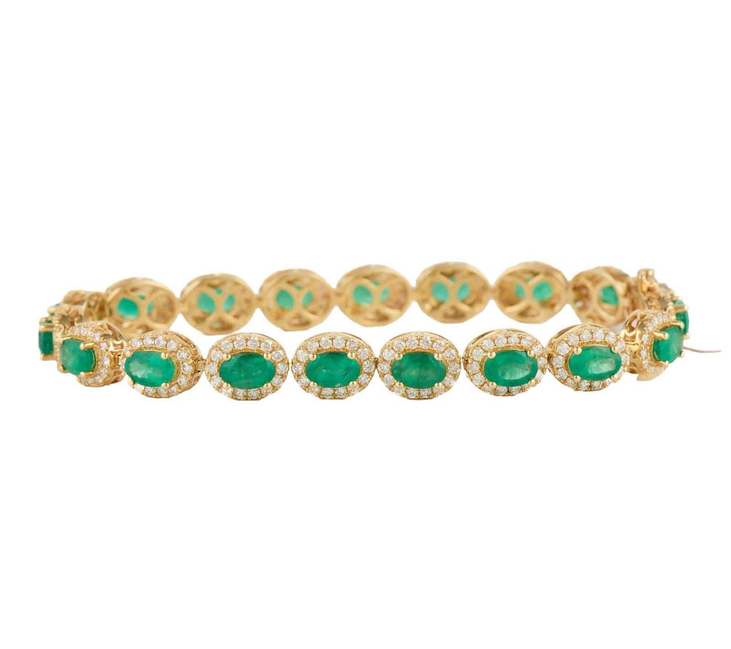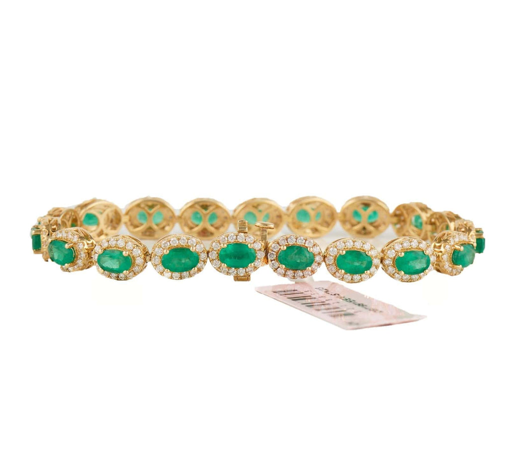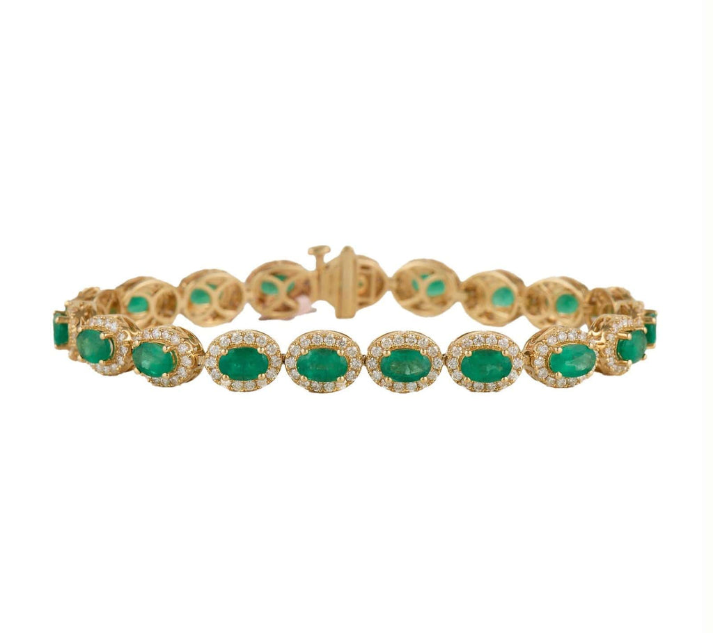 New 7.75ctw Oval Emeralds and 2.60ctw Diamond Frame Tennis Bracelet in 14K
