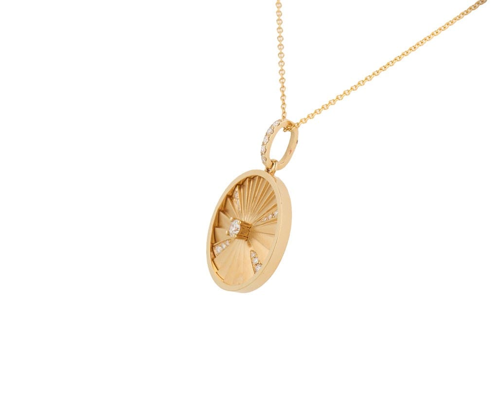 New Doves by Doron Paloma 0.18ctw Diamond Satin Finish Disc Pendant Necklace 18K