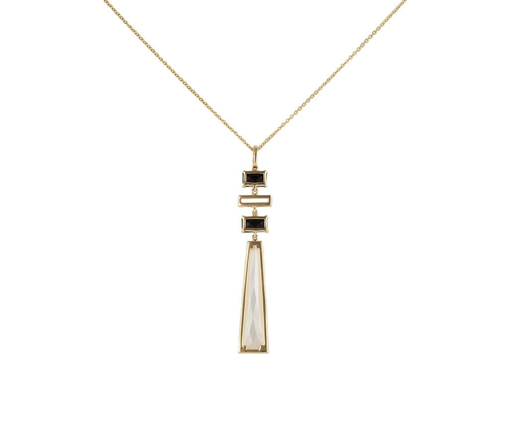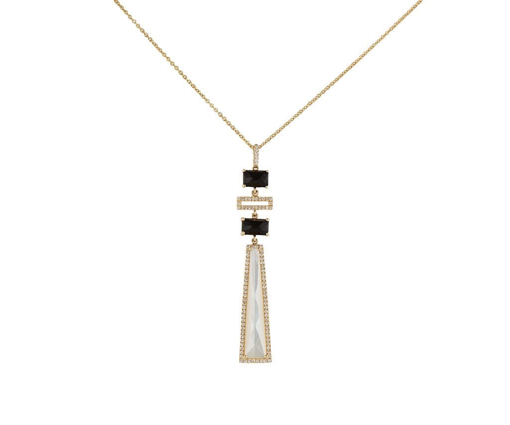 New Doves by Doron Paloma Black Onyx MOP and Diamond Frame Pendant Necklace 14K