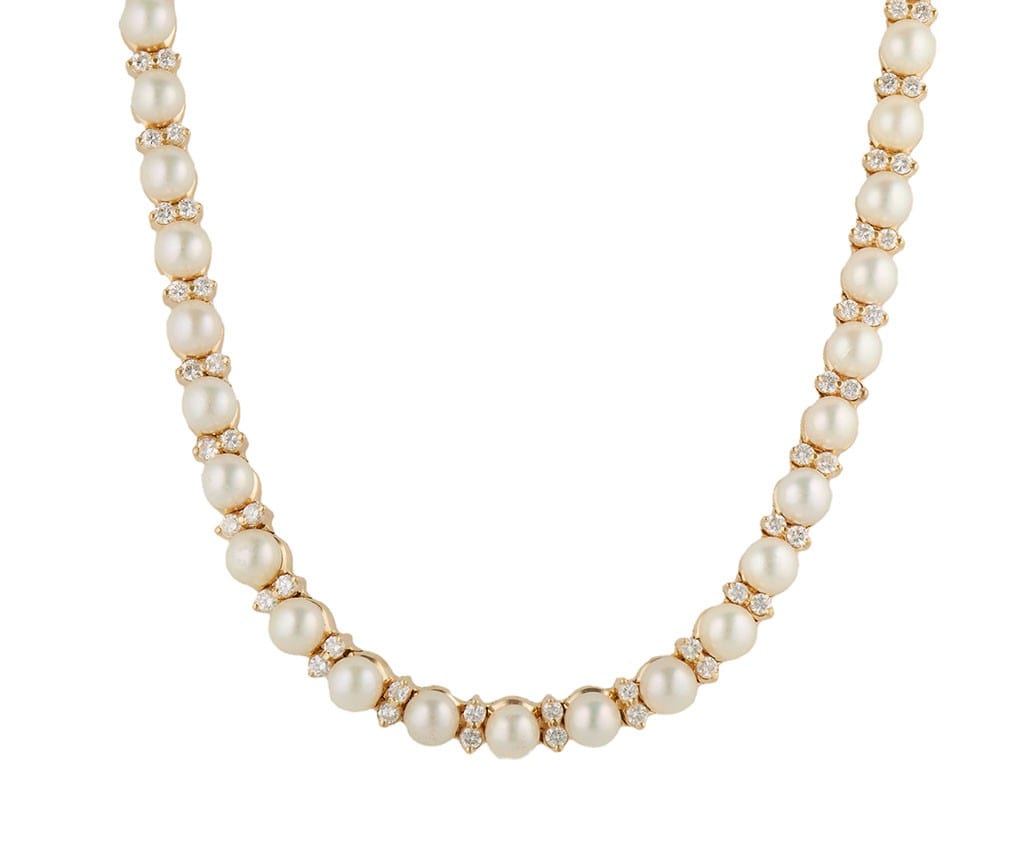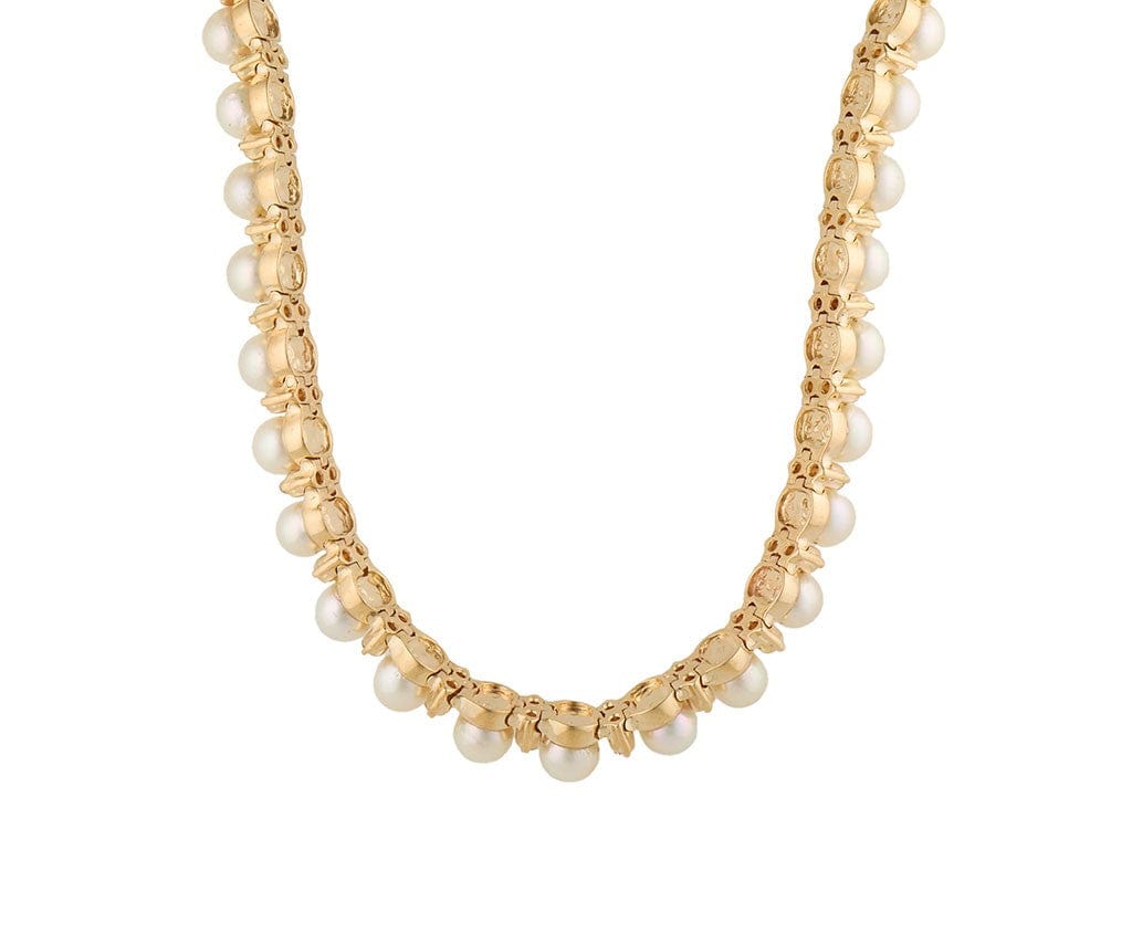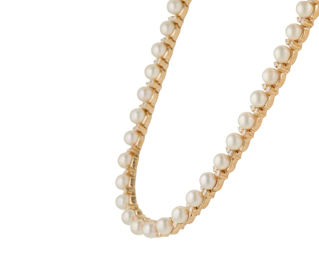 POM 1.80ctw Diamond and Pearl Station Tennis Necklace in 14K
