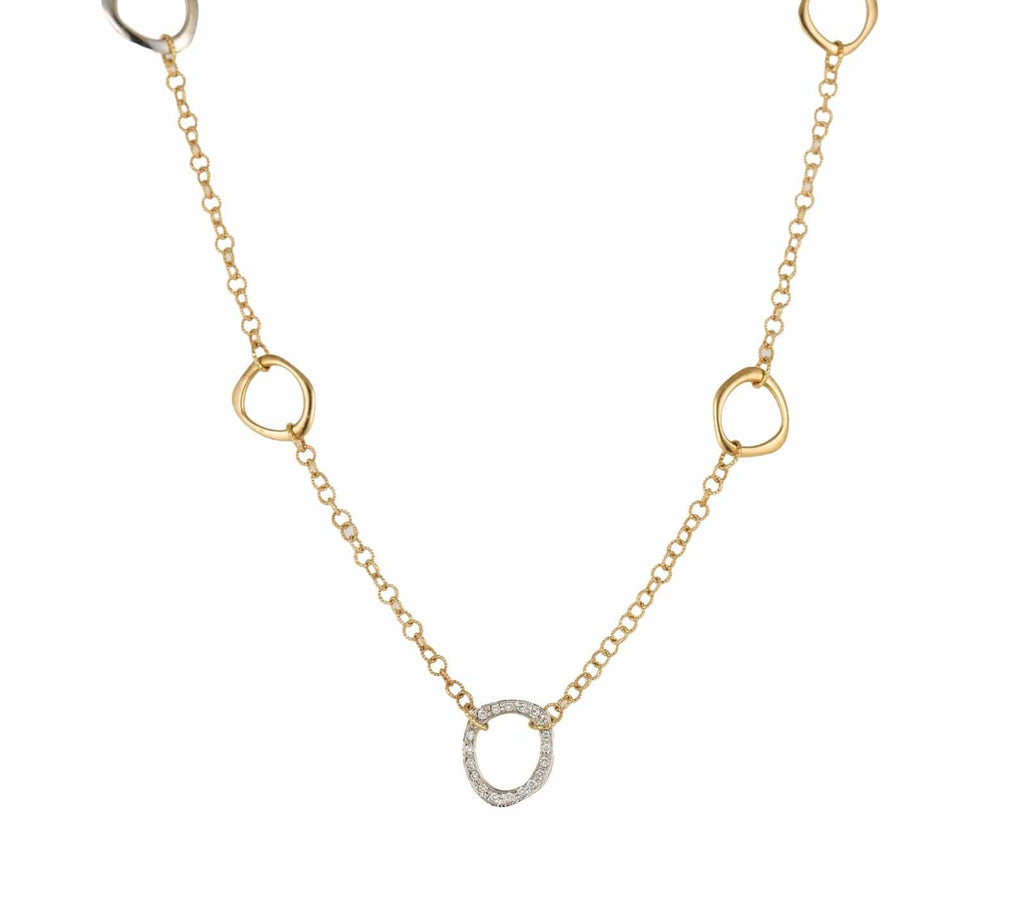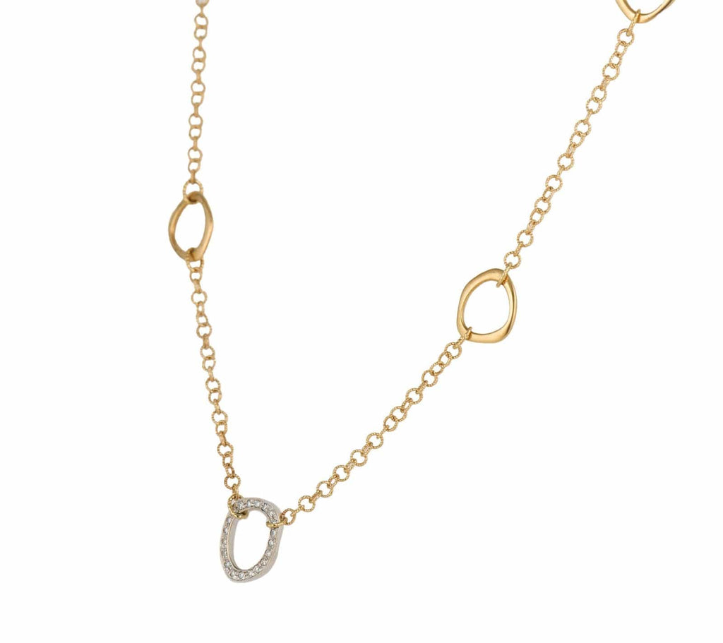 Roberto Coin 0.15ctw Diamond Flat Open Two Tone Station Necklace in 18K