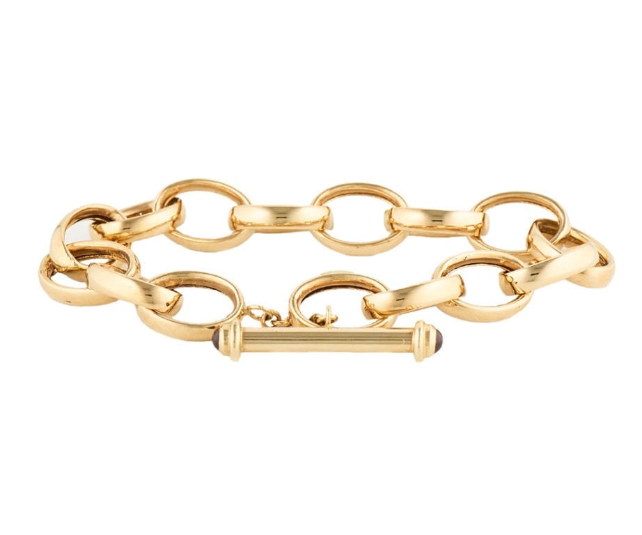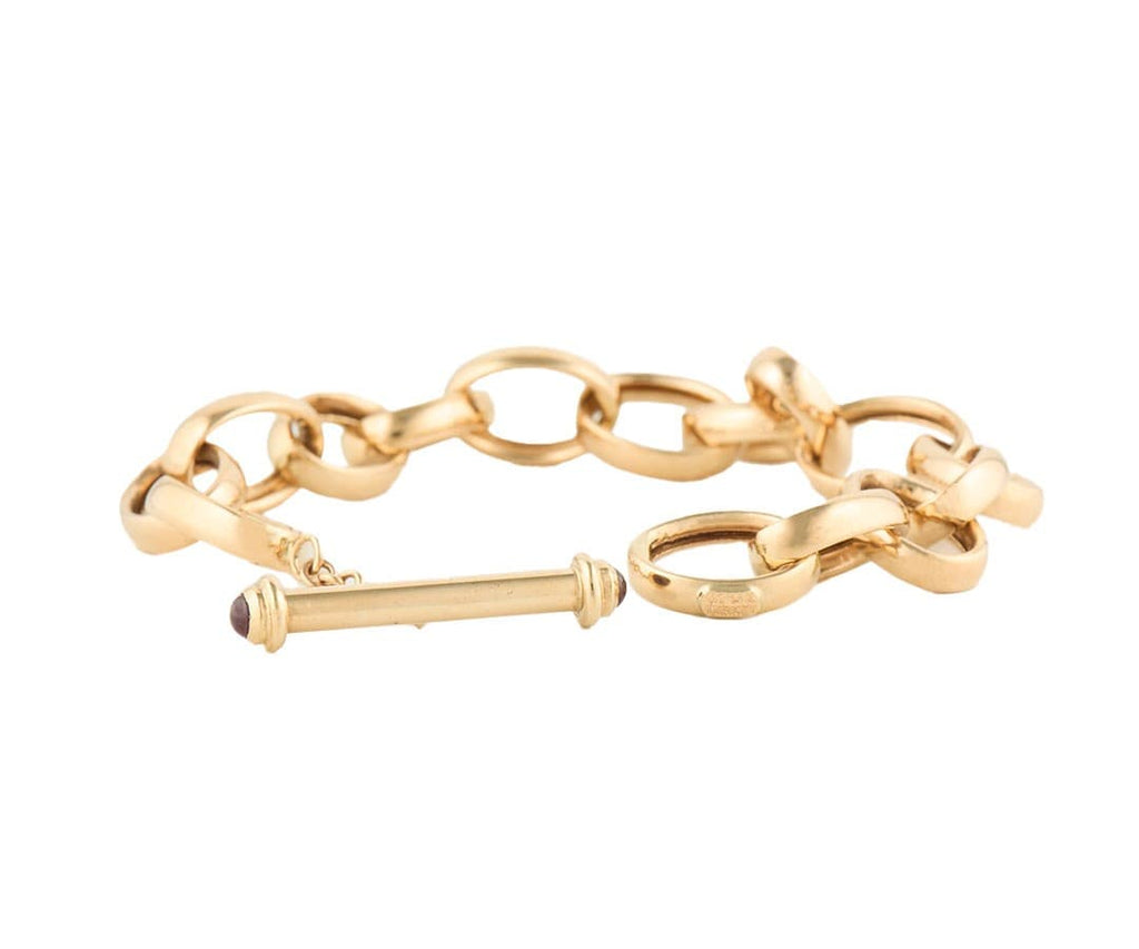 Ruby Cabochon Polished Oval Link Toggle Bracelet in 14K