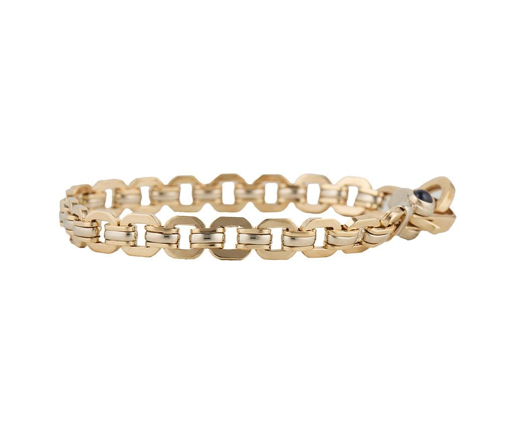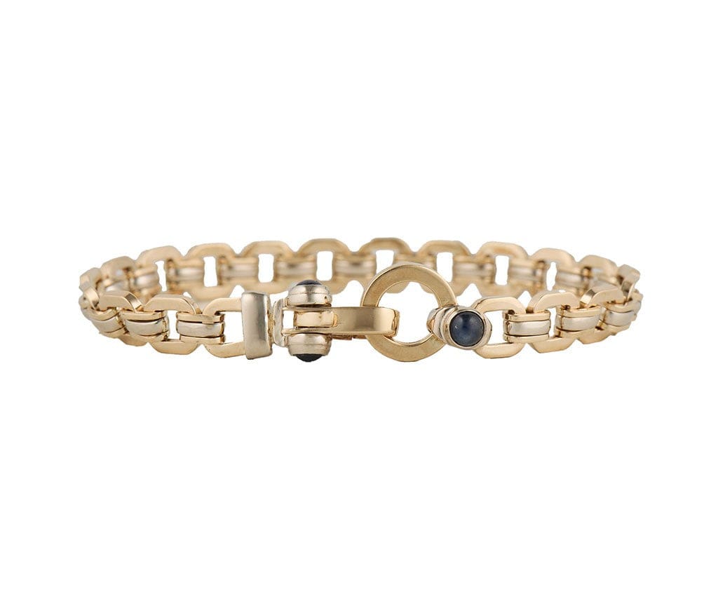 Sapphire Cabochon Polished Curb Link Bracelet in 14K
