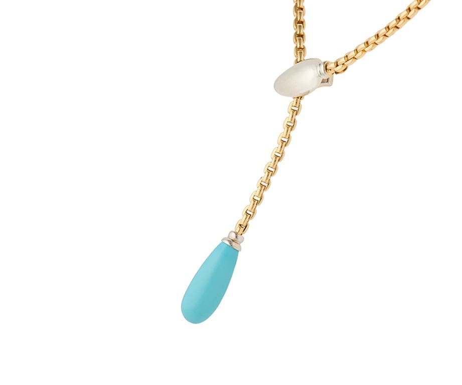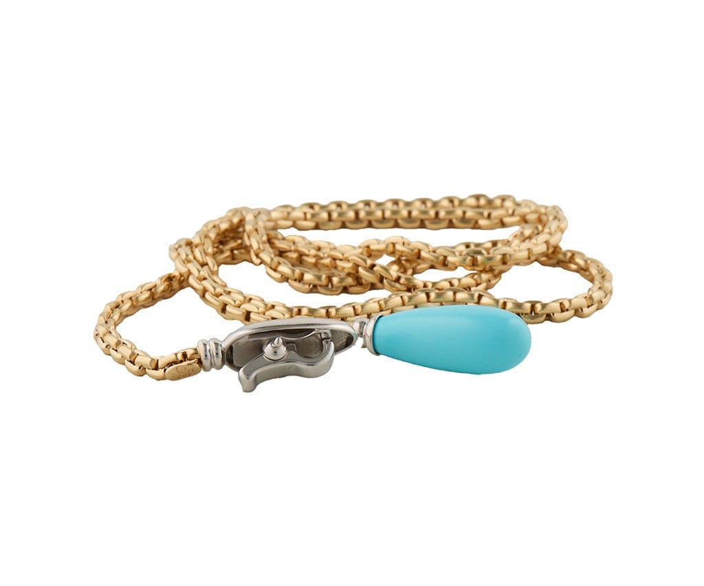 Teardrop Turquoise Snake Head Style Adjustable Lariat Necklace in 14K