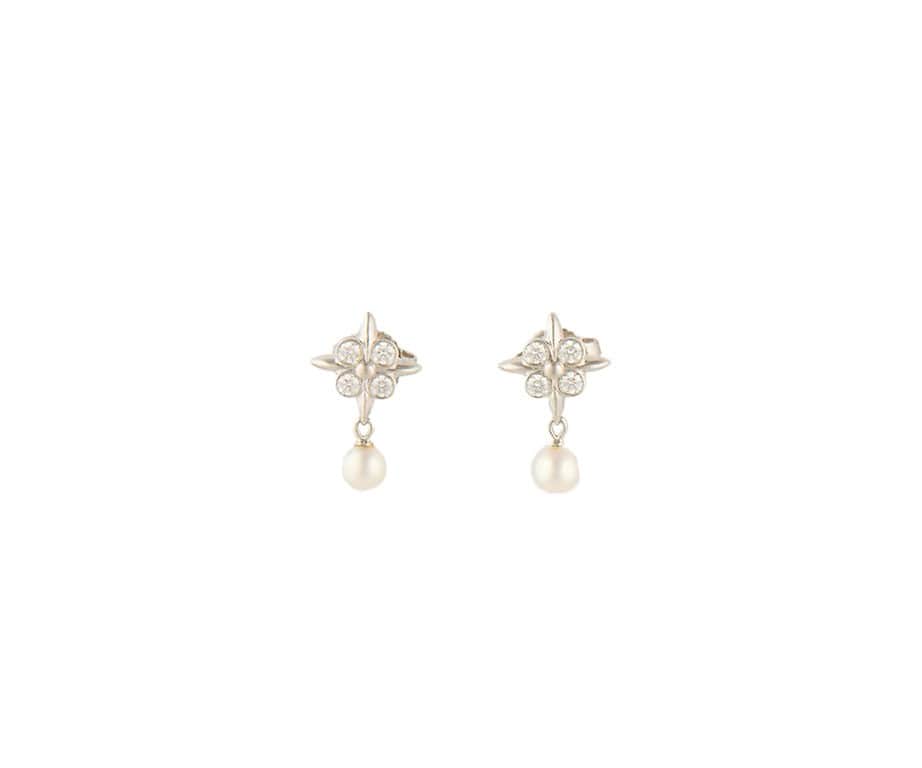 Tiffany & Co. Signature X 0.25ctw Diamond and Pearl Drop Earrings in Platinum