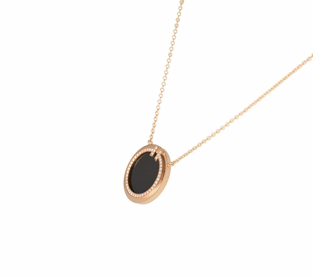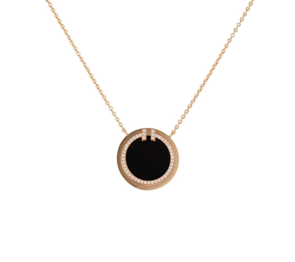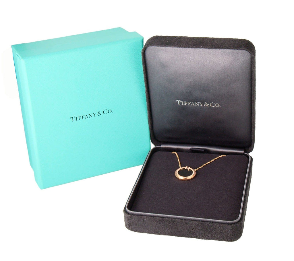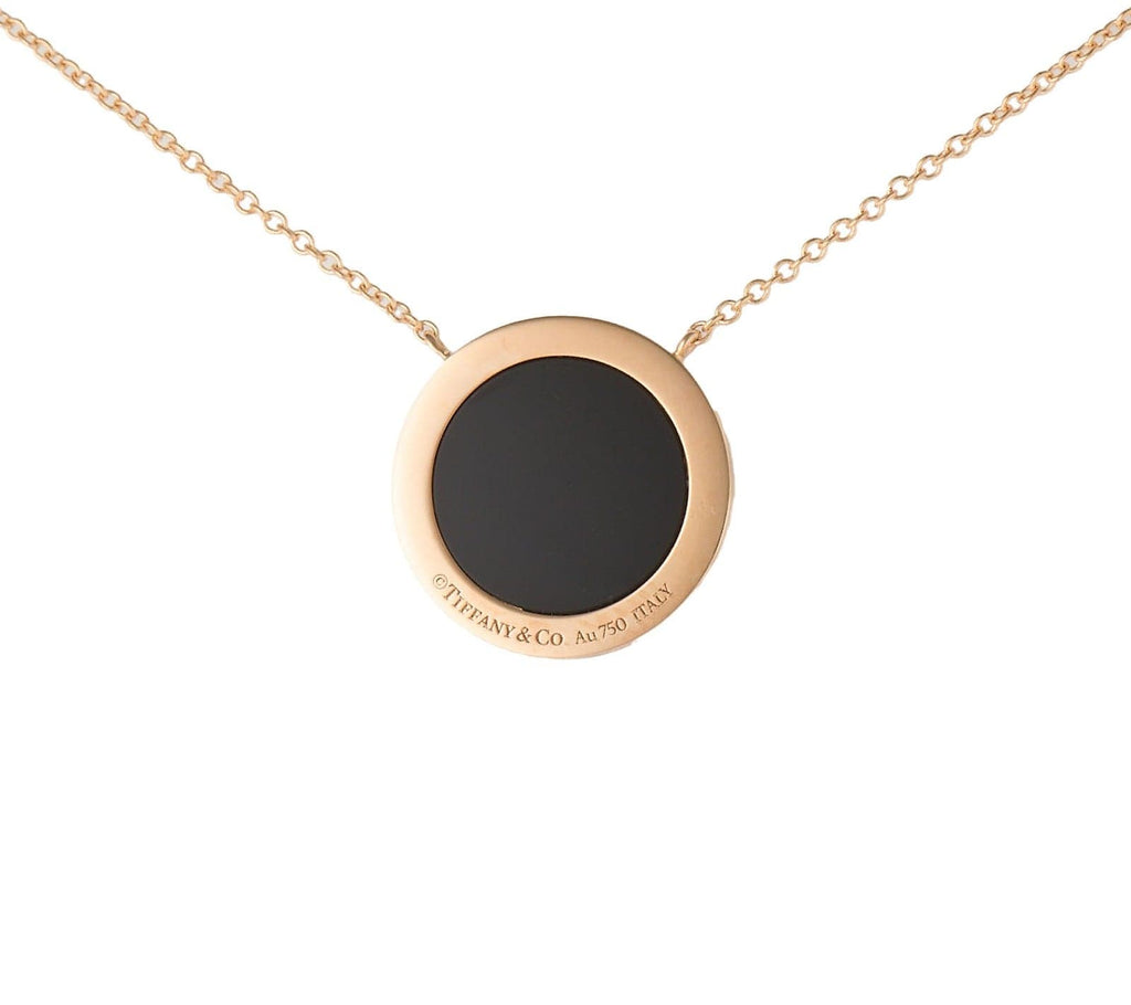Tiffany & Co. T 0.05ctw Diamond and Black Onyx Circle Pendant Necklace 18K W/Box