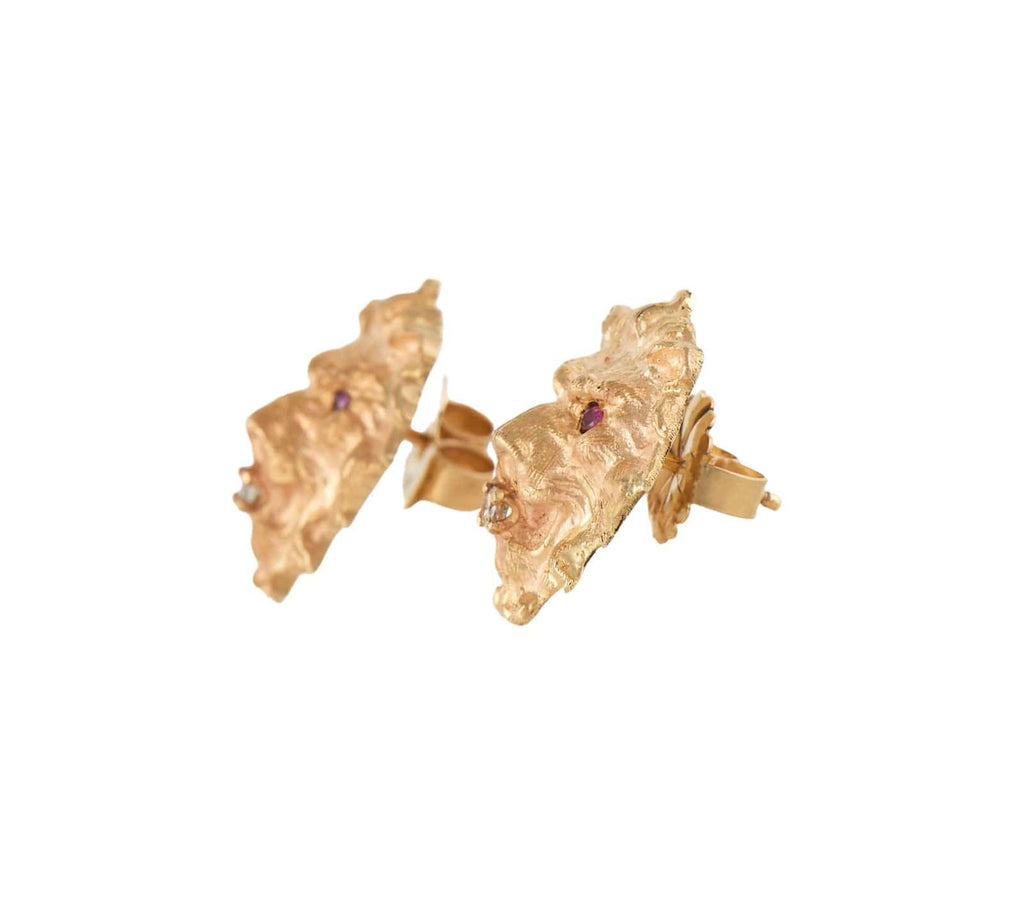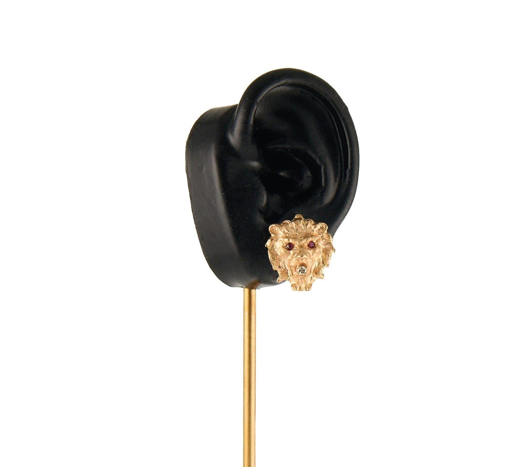 Vintage 0.12ctw Diamond and 0.12ctw Ruby Lion Head Fine Earrings in 14K