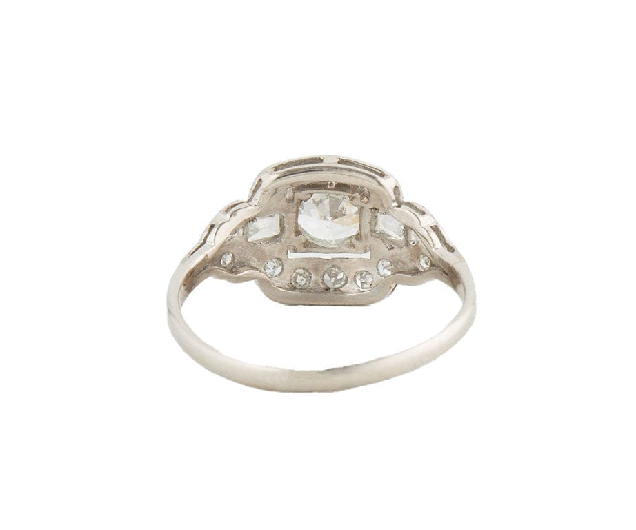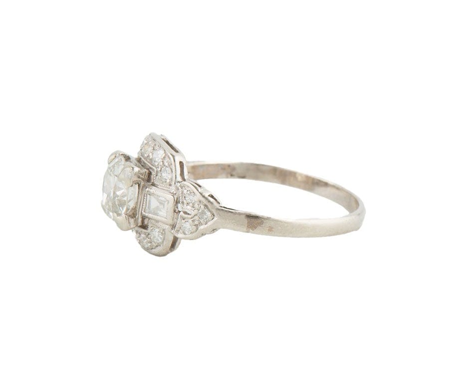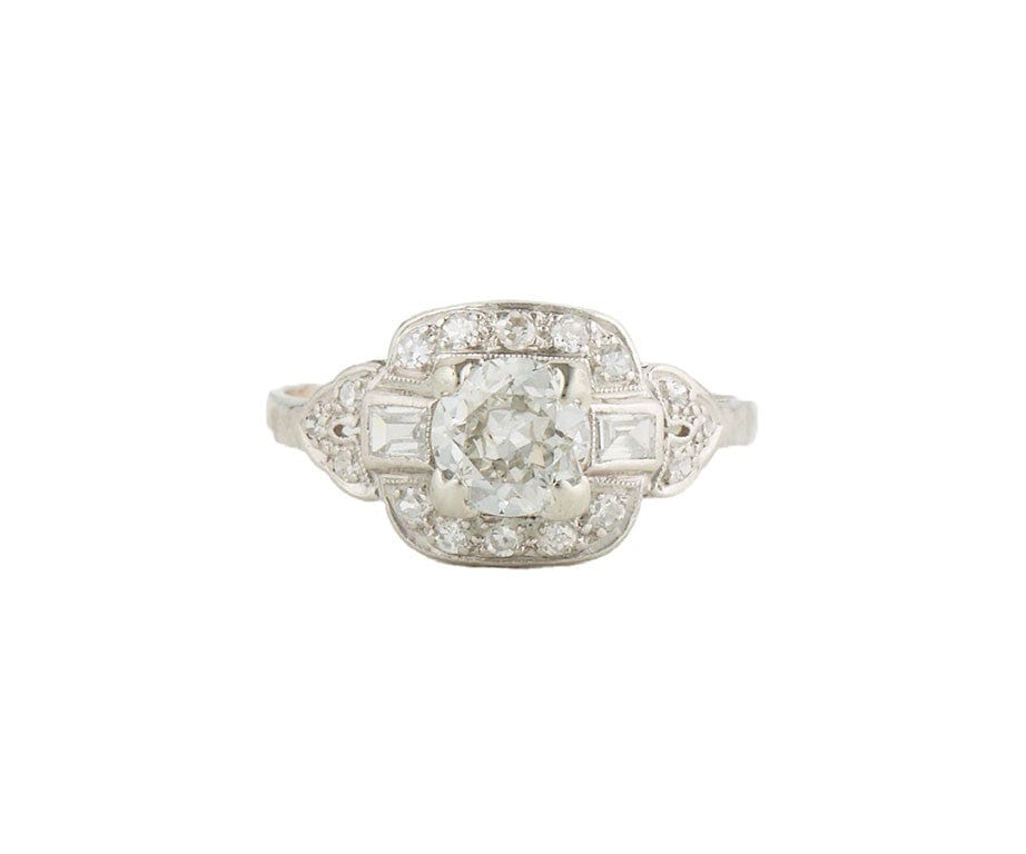 Vintage 1.20ctw European Baguette and Round Diamond Art Deco Ring in Platinum